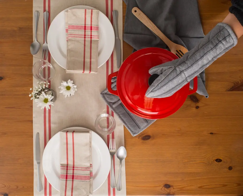 TANGO RED FRENCH STRIPE TABLE RUNNER 14x108