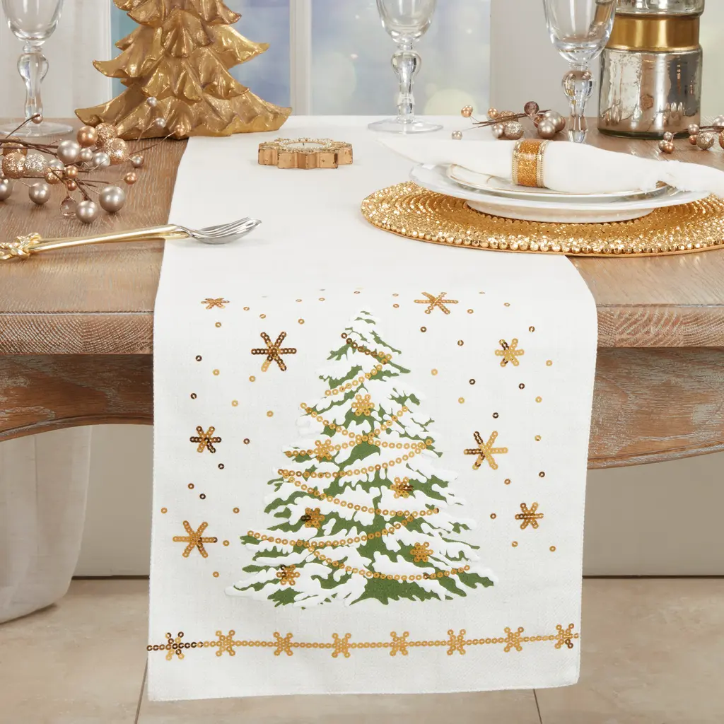 Add a touch of light to your table decor this holiday season, with this lovely and bright LED Lights Christmas Tree Table Runner. It brings a beautiful, whimsical note to any table, and it blends well within any holiday decor. Pair with solid green or plaid table mats and napkins for a contrasting effect.