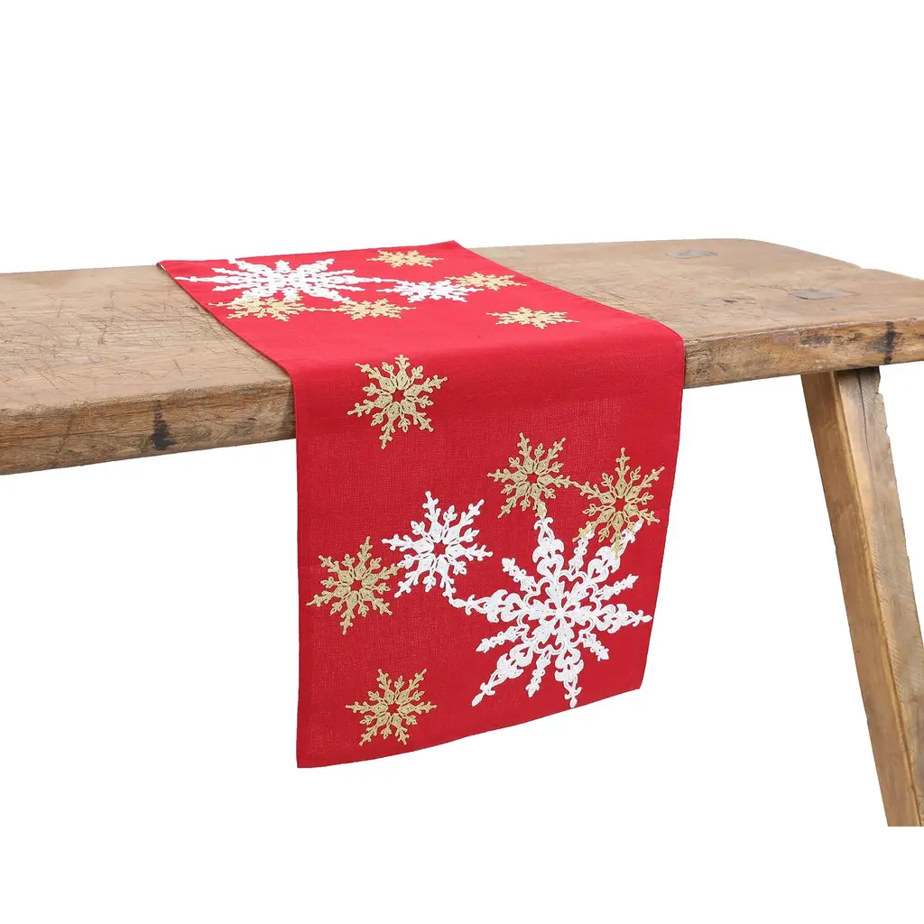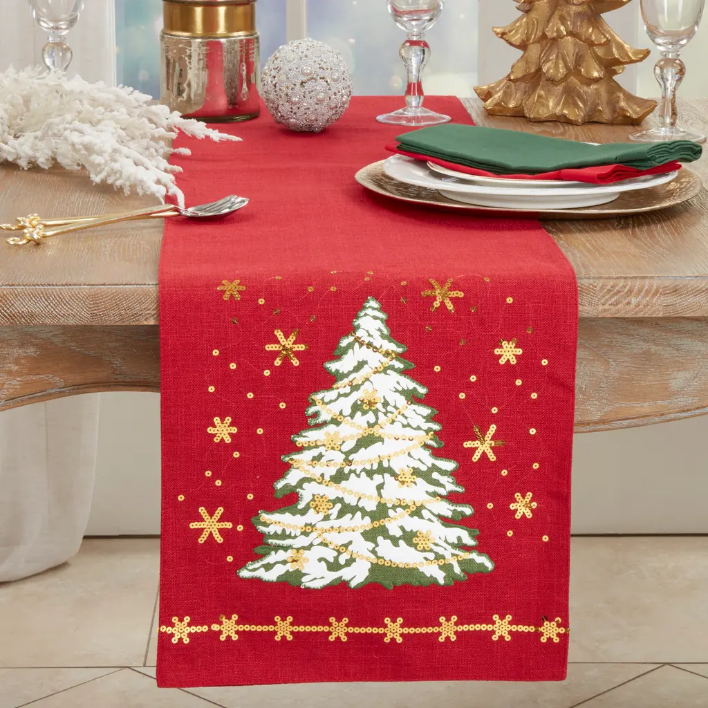 Traditional Christmas Tree Table Runner - Red