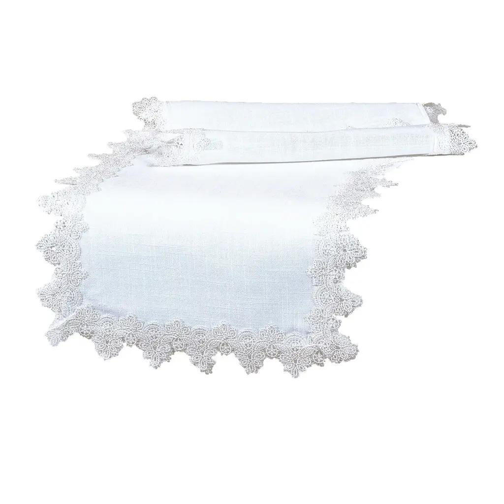 Ready your home for a special event with this Victorian lace trim runner adorning your dinner table. This classic table runner has a white color that makes it compatible with most color schemes and suitable for various occasions. Made from 100-percent polivicose, this lace trim is machine-washable for almost effortless maintenance.