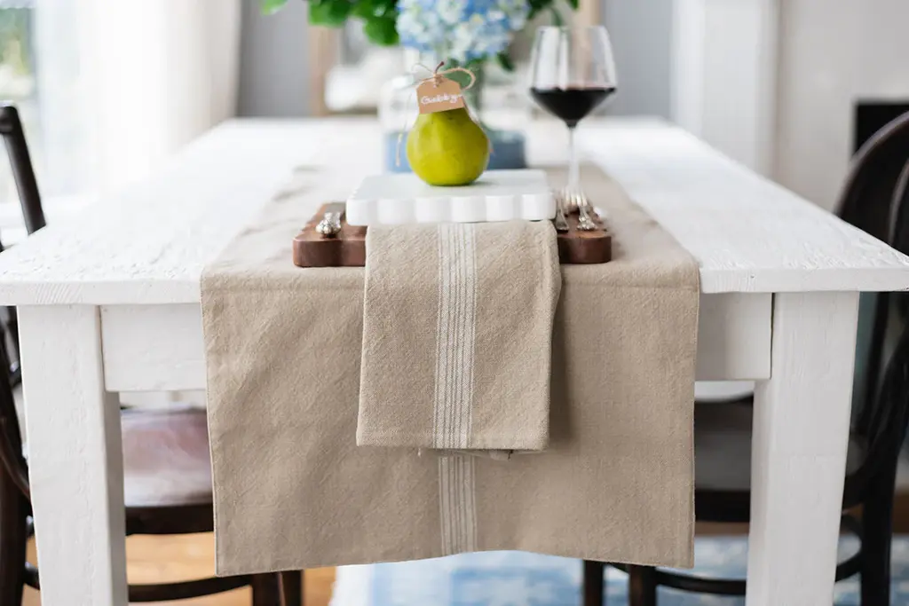 A seamless fusion of heritage and modernity, the French Bistro Collection is designed for those with a discerning eye for both style and substance. Crafted from 100% premium cotton, this table runner is luxuriously soft yet durable for everyday use. The signature striped motif - an homage to traditional Provençal textiles -lends a refined yet understated vibrancy, elevating any kitchen or tablescape with a touch of je ne sais quoi.