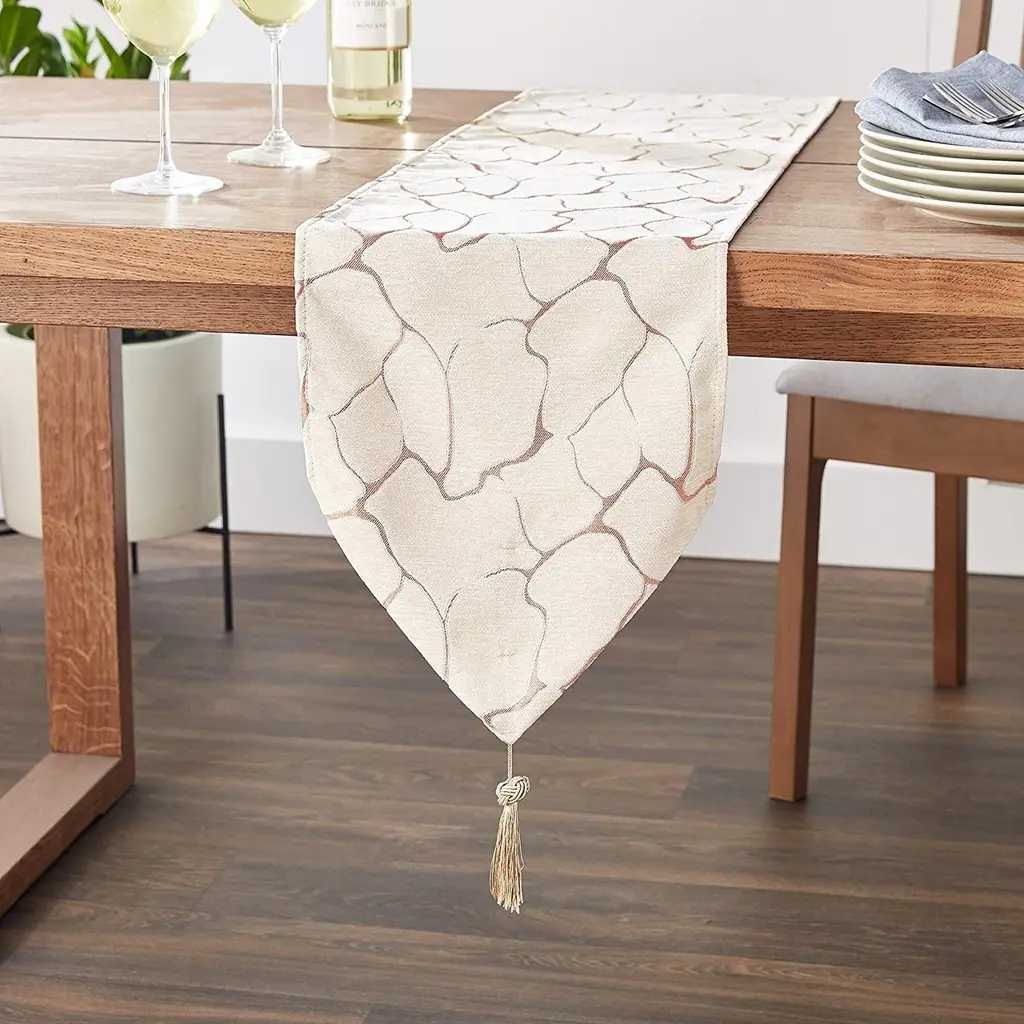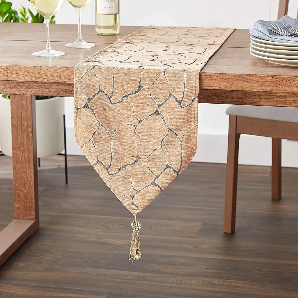 Violet Linen Milano Arts Artistic Design, Polyester Jacquard Chenille, With Tassles, Decorative Table Runners - Gold