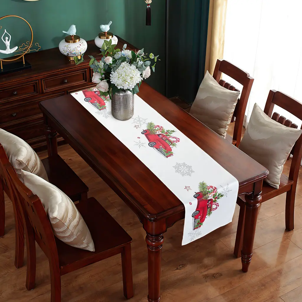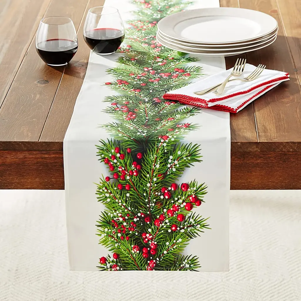Violet Linen Inc. was founded in 1996 and established in the beginning of 1997. Violet Linen's mission is to preserve the look and touch of many generations back "Grandma's magnificent tablecloth," while focusing at the same time on easy care, durability and at very aggressive pricing, and they are proud to have accomplished their goals and objectives well beyond their expectations and have ever since enjoyed a sterling reputation among their thousands of customers. Seasonal Xmas Christmas Holiday Harmony Garland Pattern, in a variety of great Designs The Seasonal Xmas Christmas Holiday Harmony Garland Pattern collection are expertly tailored, Fabric is made from 100% Polyester Microfiber for ultra soft feel and easy care. Looking to improve your home decor with the richest holiday styles?The decorative Seasonal Xmas Christmas Holiday Harmony Garland Pattern table runner is a must just to add a touch of delight to your holiday decor.The beautiful festive table runner will enhance your home and dining experience throughout the Christmas season, it features an exquisite printed design, beautifully embellishing the surroundings. Perfect for decorating your tables for Christmas parties and gatherings. The classic and charming appearance of the runner adds elegance and character to any room, it will suit any decor, be it traditional or modern. • Elegant tailoring and expertly sewn hems. • 100% Polyester, Super soft feel Premium Polyester Fabric Heavy Cotton Feel printed fabric for softness and long-lasting durability. • Ultra-durable, fade resistant, designed to last for years. • Machine wash cold, gentle cycle, non-chlorine bleach, line dry in shade, cold iron. • Can easily be laundered time and time again without fraying or damage.