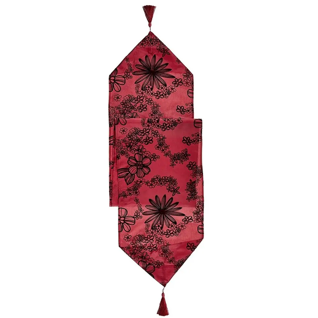 Violet Linen Silky Bloom Daisy Flower Pattern, 13 Inch By 70 Inch, Decorative Table Runners - 13" X 70" - Burgundy