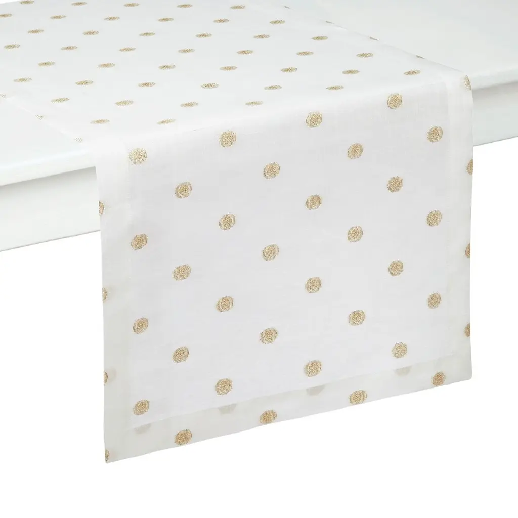 Subtle metallic dots add a festive dash to everyday dining, by Mode Living. A special coating protects the surface from spills and stains.