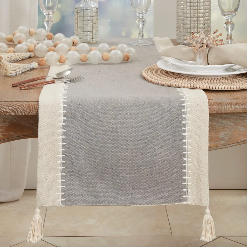 Whipstitch Band Design Table Runner - 16"x72" - Grey