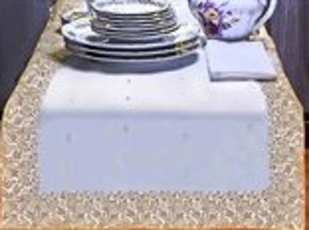 White Gold Handmade Indian Design Table Runner For Wedding Receptions, Party Decorations, And Decor For Every Occasion | Silk Sari Fabric | Ideal Ethnic Tablerunner With Golden Borders.