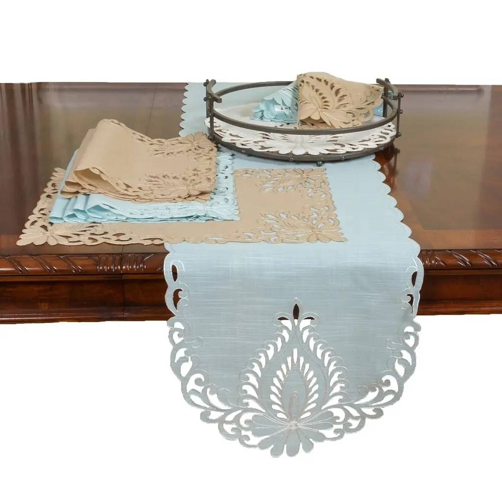 Wilshire Embroidered Cutwork Table Runner, 16 By 36-Inch, Beige - 16''x36