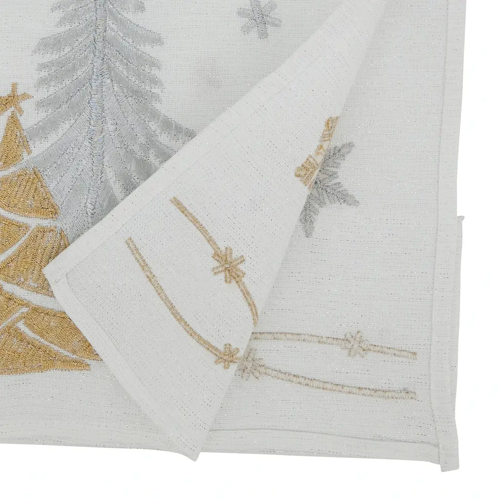 Capture the enchantment of winter with this Christmas Trees and Snowflakes Table Runner. Delicately designed with festive trees and snowflakes, it adds a whimsical touch to your table. Crafted with meticulous care, this runner sets the stage for joyful holiday gatherings, creating a magical and inviting ambiance for memorable celebrations.Features: