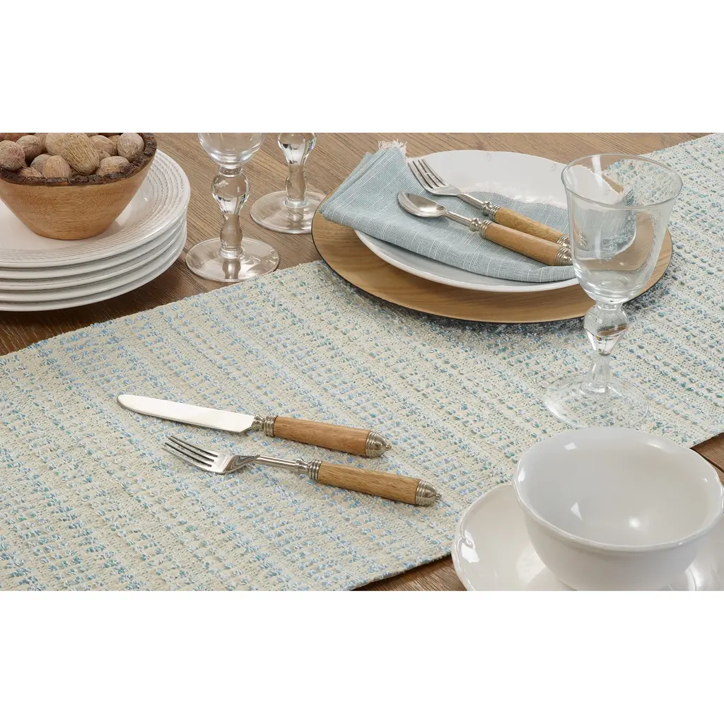 Woven Table Runner With Line Design - 16"x72" - Aqua