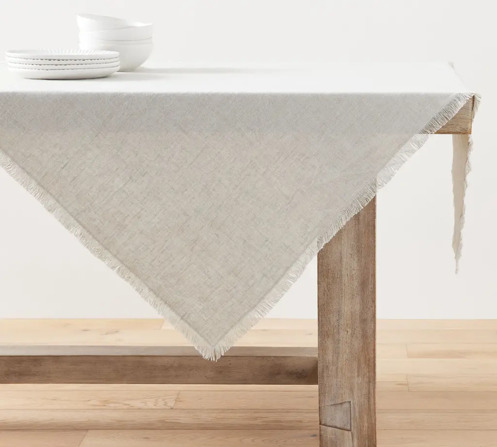The relaxed look of linen makes any spread feel like a home-cooked meal. We designed our table throw to evoke that welcome feeling, then added a frayed edge as the finishing textural touch. In a range of cool neutrals, it matches just about any dinnerware, and will continue to get softer and more lived-in with every wash.