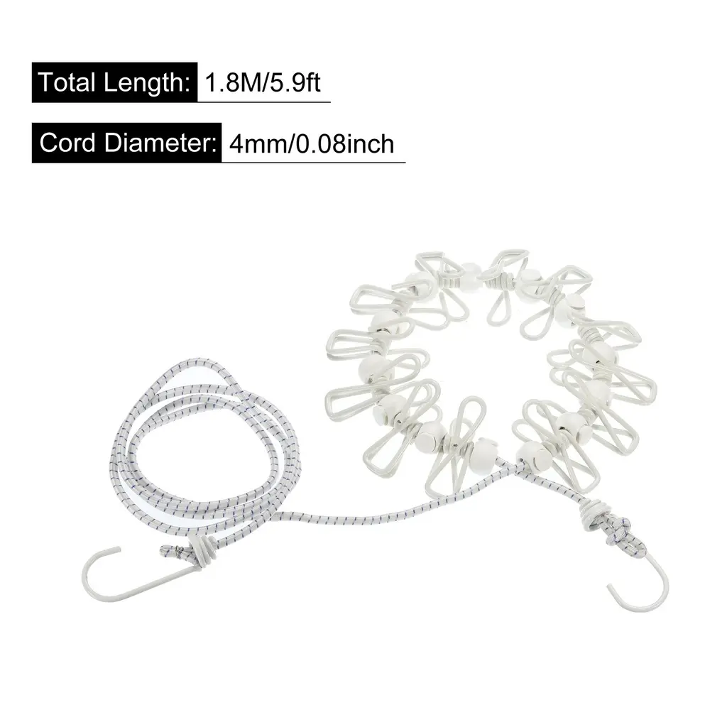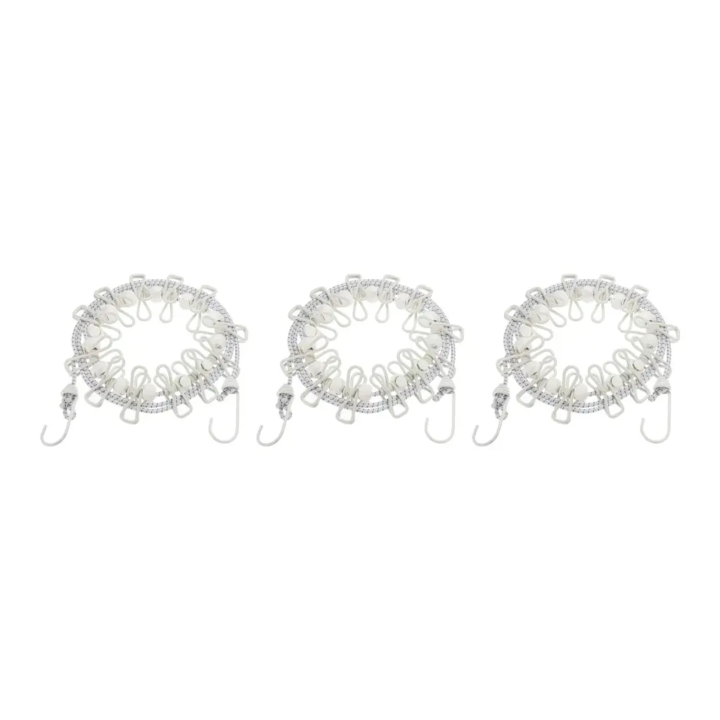 1.85m/6.07ft Windproof Elastic Portable Clothesline With Clips, 3 Pcs - White
