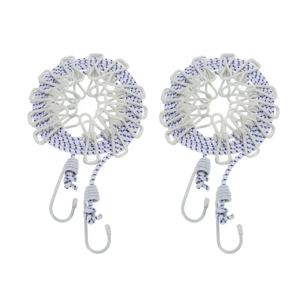 1.8m/5.9ft Windproof Elastic Portable Clothesline With Clips, 2 Pcs - White