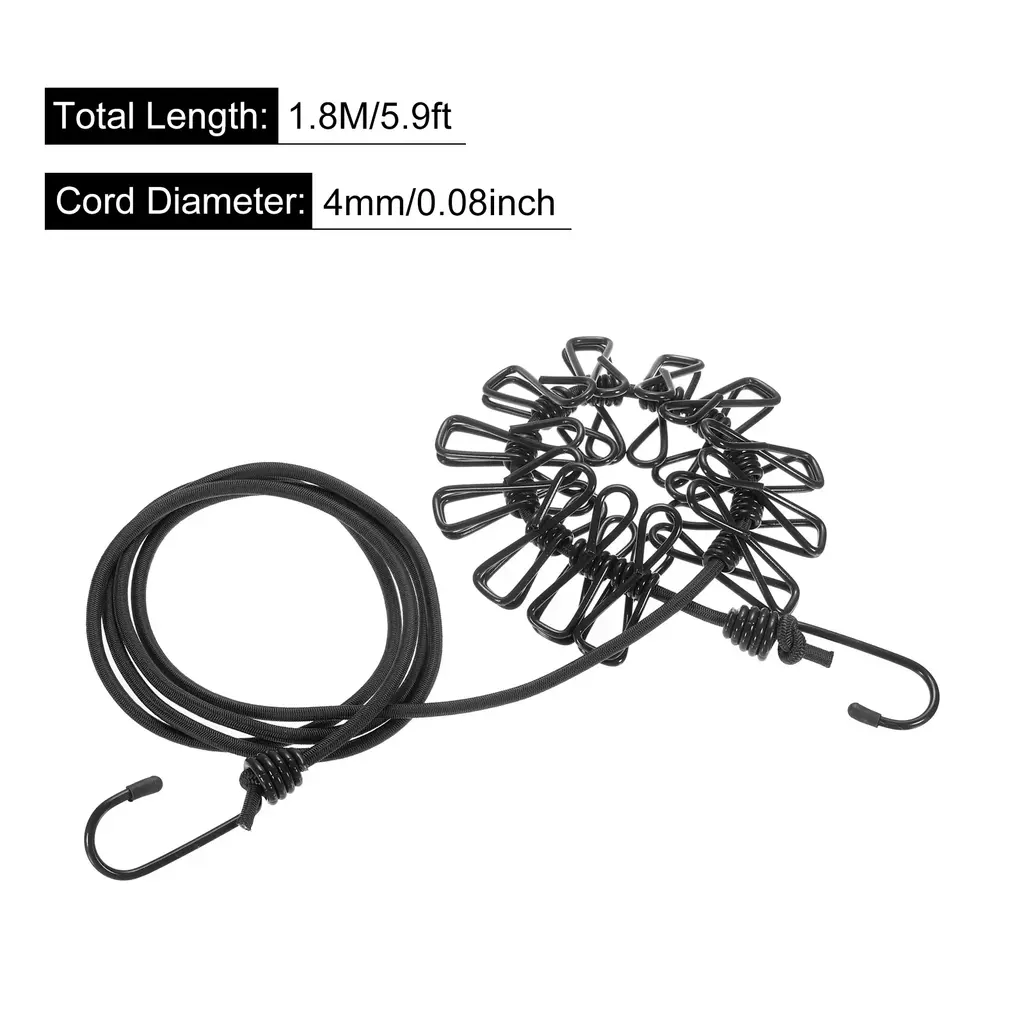 1.8m/5.9ft Windproof Elastic Portable Clothesline With Clips, 4 Pcs - Black