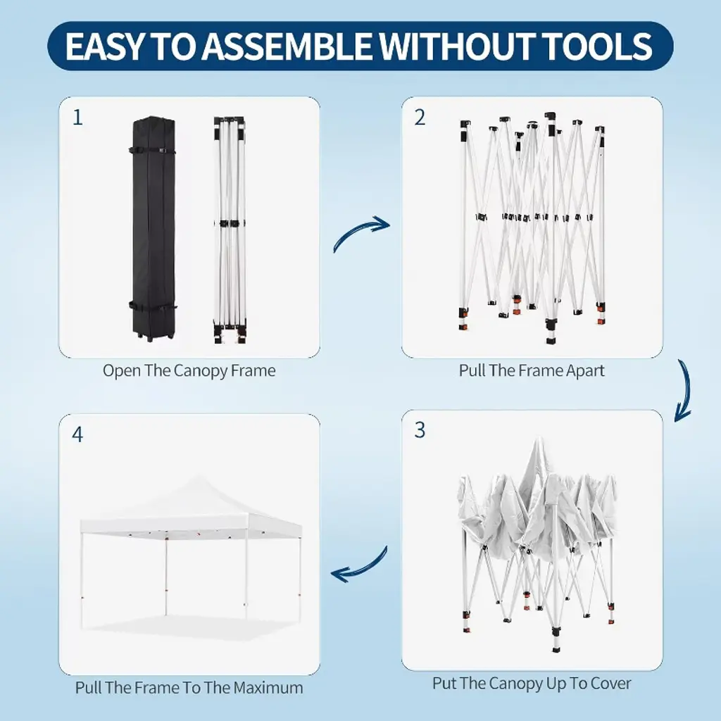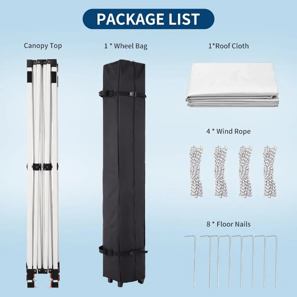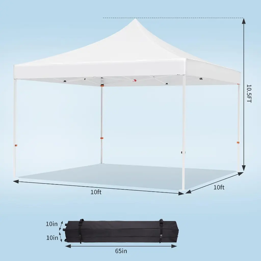 Elevate your outdoor gatherings with our spacious, durable 10x10 ft pop-up canopy tent, designed for all-weather protection and effortless tool-free setup!Highlights at a Glance:Spacious 10x10 ft canopy for up to 10 peoplePremium 420D Oxford fabric with PU coating for UV protection and waterproofingTool-free, easy four-step assemblyConvenient roller bag for transportVersatile for events, sports, and outdoor activitiesSpecifications:Size: 10x10 FtMaterial: 420D PU Coating Oxford Cloth, SteelRecommended Uses For Product: Commercial Canopy Tent, Wedding Canopy Tent, Party Canopy Tent, Outdoor Canopy TentFriendly Note:While the canopy is designed to provide protection from UV rays and light rain, it is recommended not to leave the canopy set up in severe weather conditions, including strong winds, heavy rain, or storms, as this may cause damage.Ensure to follow the easy setup process for optimal safety and stability. Always secure the canopy with the provided stakes and ropes to enhance wind resistance.