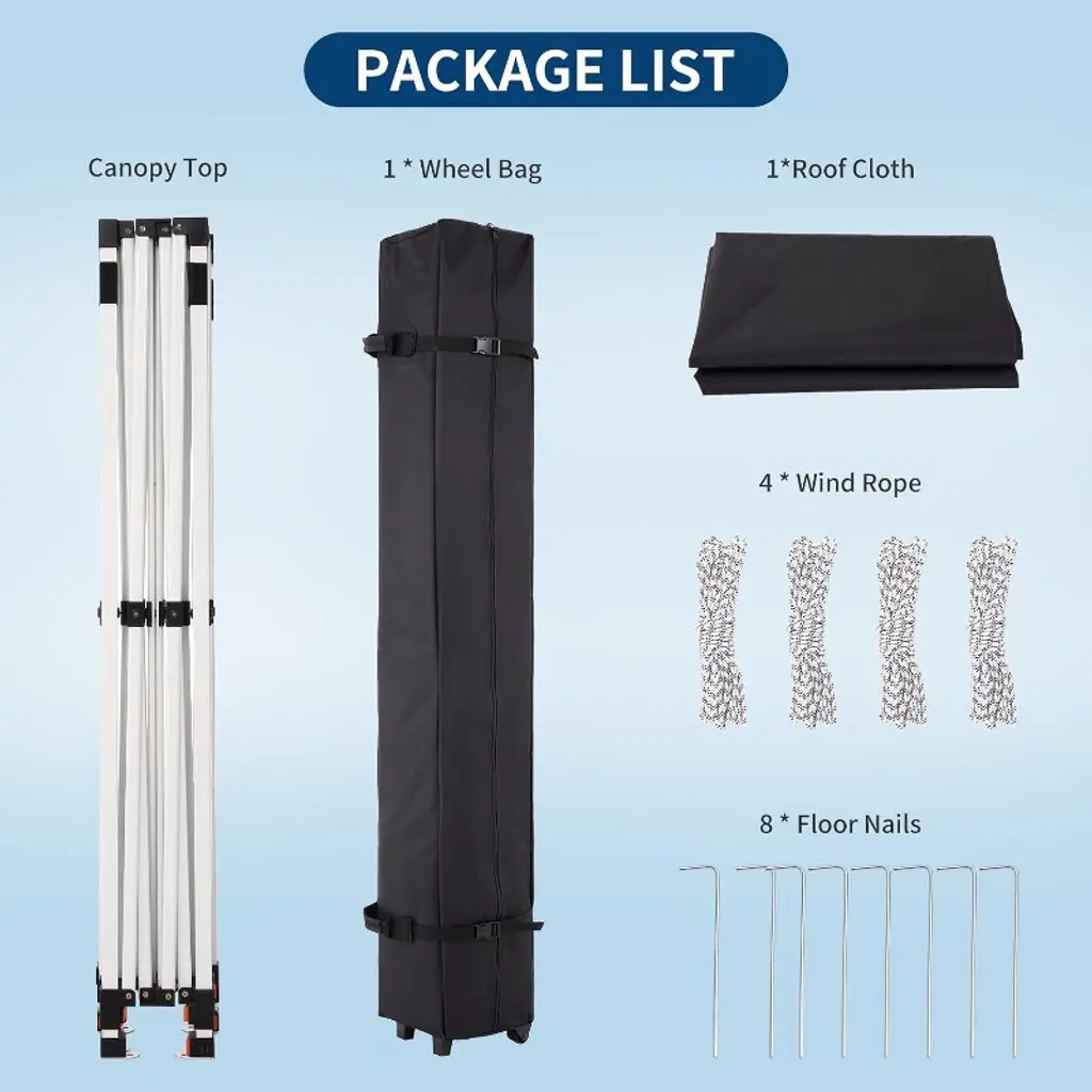 Elevate your outdoor gatherings with our spacious, durable 10x10 ft pop-up canopy tent, designed for all-weather protection and effortless tool-free setup!Highlights at a Glance:Spacious 10x10 ft canopy for up to 10 peoplePremium 420D Oxford fabric with PU coating for UV protection and waterproofingTool-free, easy four-step assemblyConvenient roller bag for transportVersatile for events, sports, and outdoor activitiesSpecifications:Size: 10x10 FtMaterial: 420D PU Coating Oxford Cloth, SteelRecommended Uses For Product: Commercial Canopy Tent, Wedding Canopy Tent, Party Canopy Tent, Outdoor Canopy TentFriendly Note:While the canopy is designed to provide protection from UV rays and light rain, it is recommended not to leave the canopy set up in severe weather conditions, including strong winds, heavy rain, or storms, as this may cause damage.Ensure to follow the easy setup process for optimal safety and stability. Always secure the canopy with the provided stakes and ropes to enhance wind resistance.