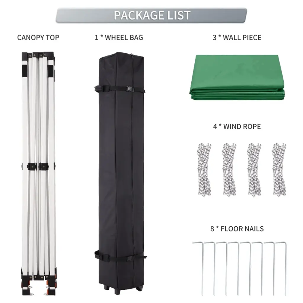 10 x 10 Pop Up Canopy with 3 Sidewalls, Outdoor Patio Portable Canopy Tent with Roller Bag, Easy Up Commercial Instant Shade and Shelter for Events, Parties, Camping, instant shade canopy features a robust steel frame and a well-designed tube structure that offers exceptional stability and durability.