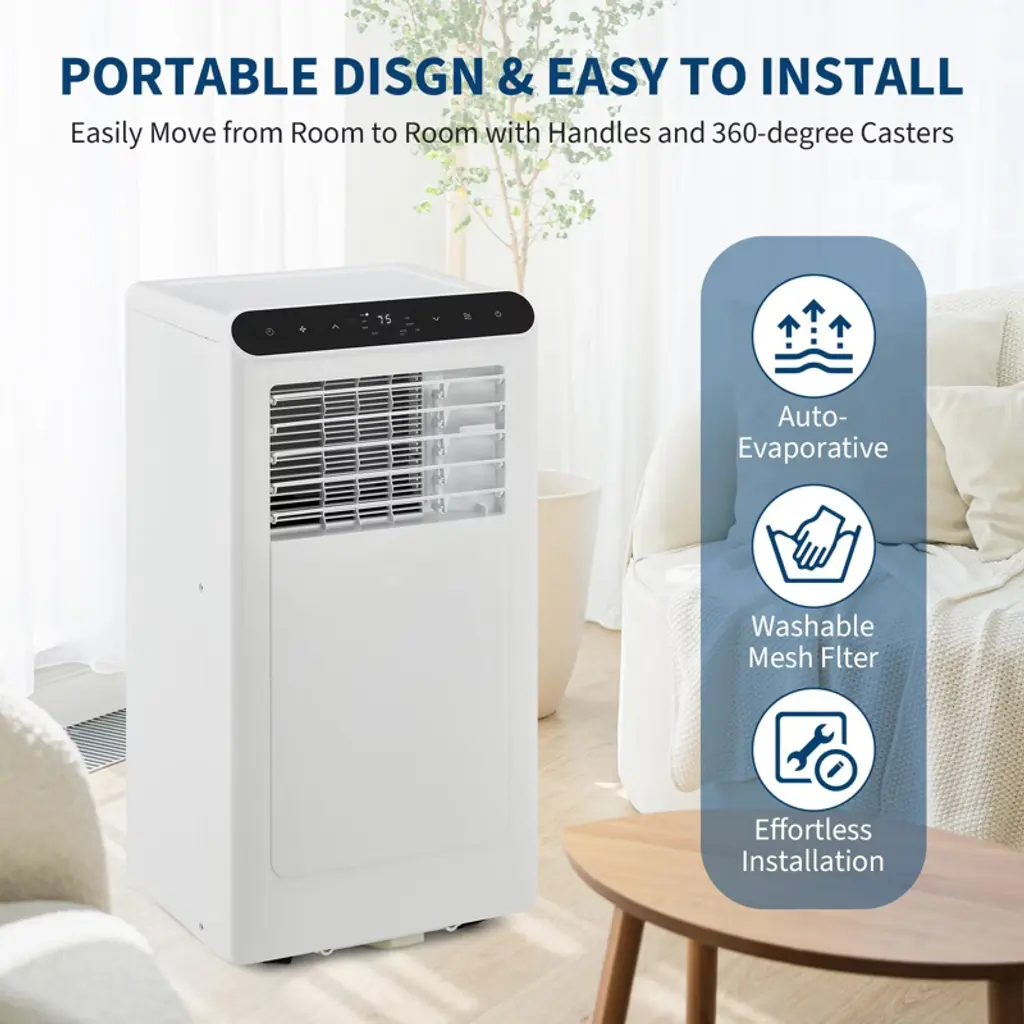 This powerful 10,000 BTU (ASHRAE) ventless portable AC delivers efficient cooling for spaces up to 450 sq.ft. Features include: • 3-in-1 Functionality - Cooling (61°F-86°F), fan (2 speeds) & dehumidifier (50 pints/day) • Smart Controls - LED display, remote (23ft range) & auto-adjust Smart Mode • Ultra Quiet - Sleep mode operates below 50dB • Easy Setup - Includes window kit & 360° wheels Ideal for bedrooms, offices and living spaces needing flexible cooling