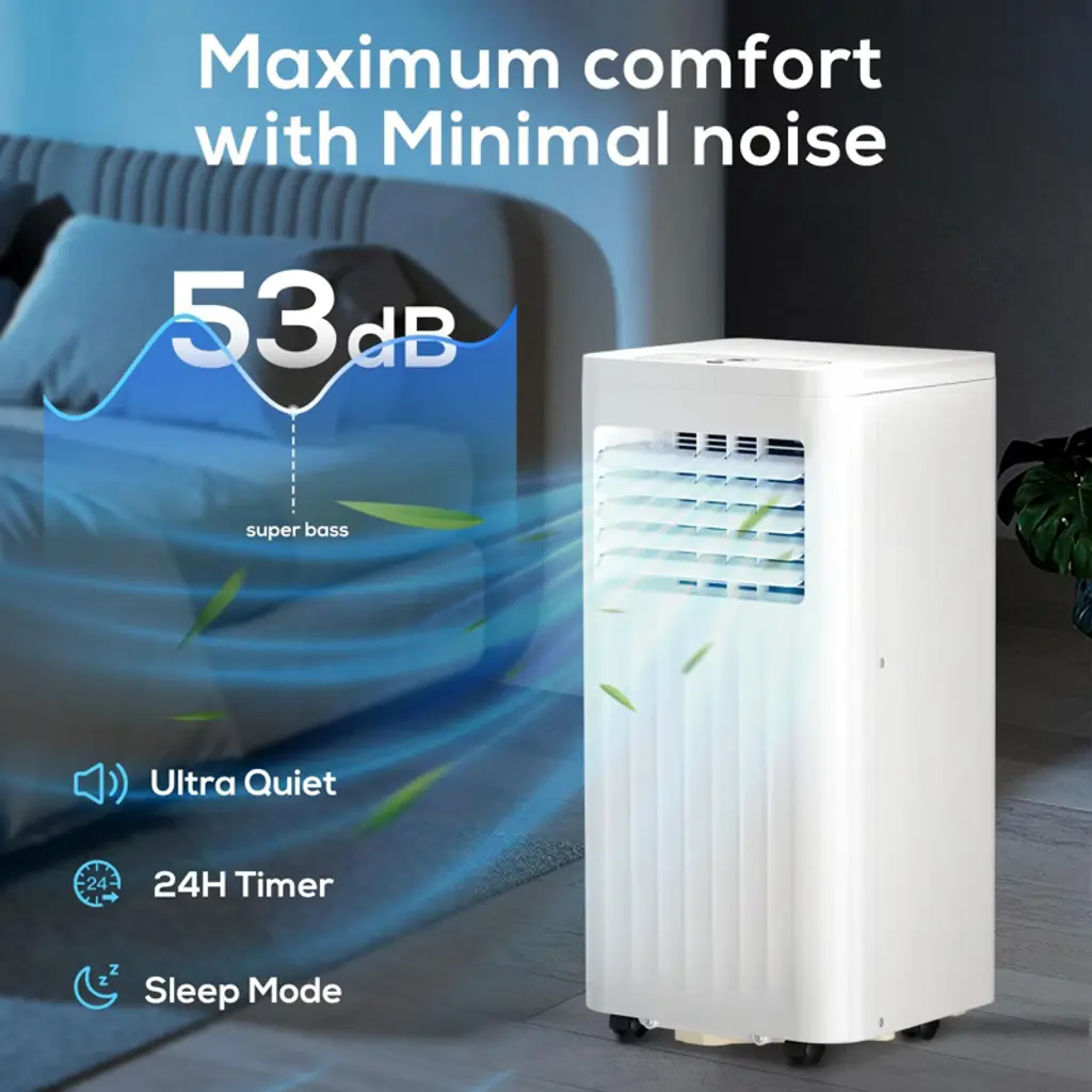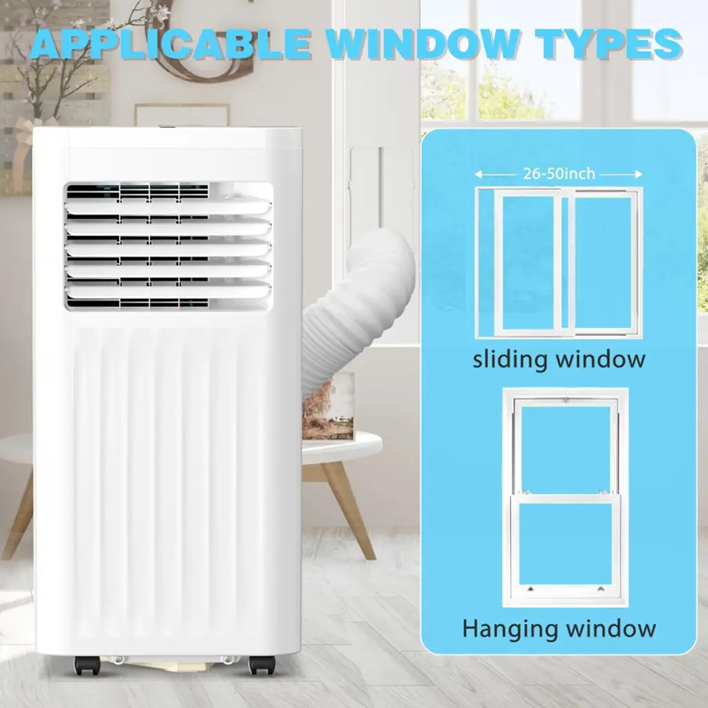 10000 BTU Portable AC with Remote – 4 Modes: Cooling, Fan, Dehumidifier, Sleep – For Rooms up to 450 Sq. Ft. – White