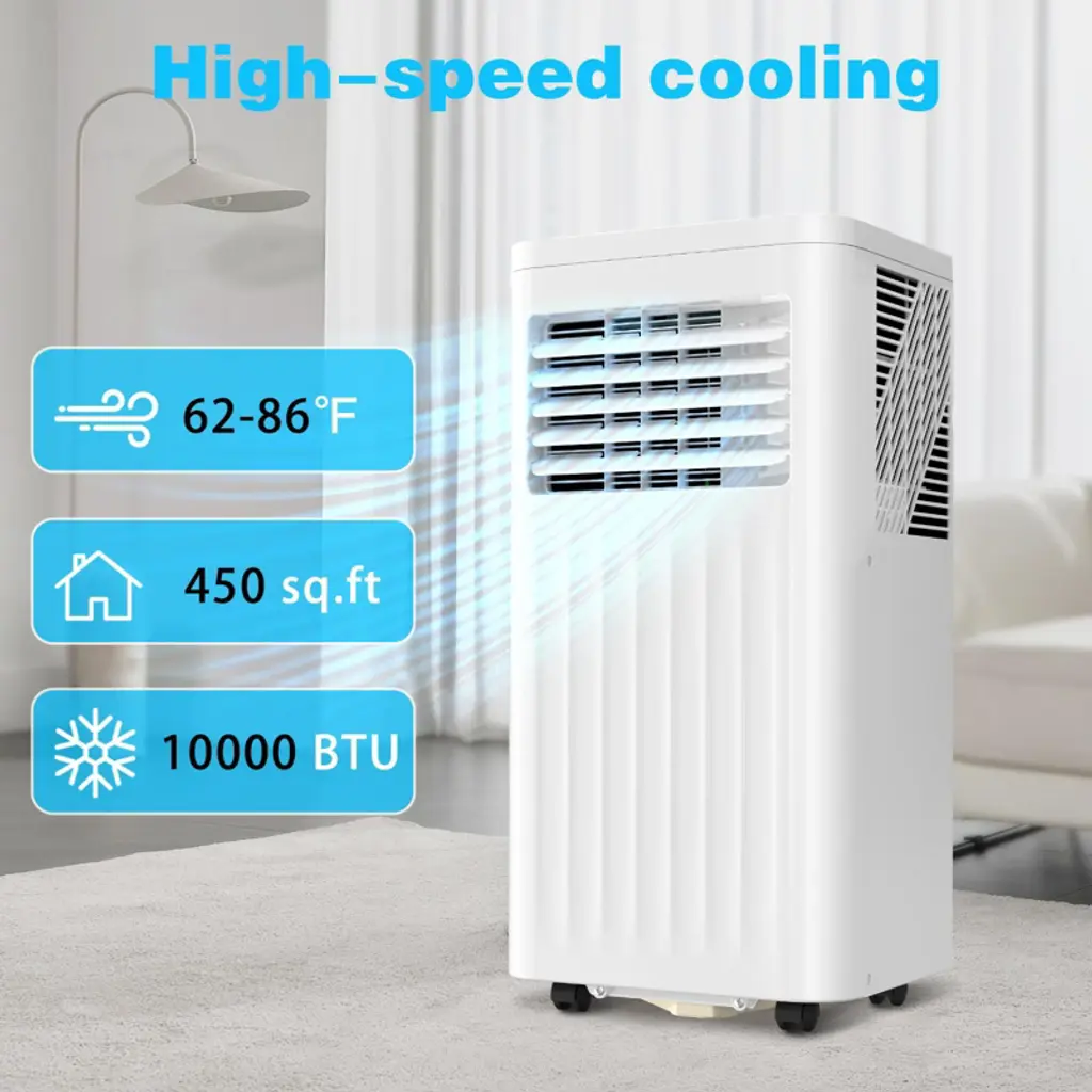 10000 Btu Portable Ac With Remote – 4 Modes: Cooling, Fan, Dehumidifier & Sleep, Covers Up To 450 Sq. Ft. – White