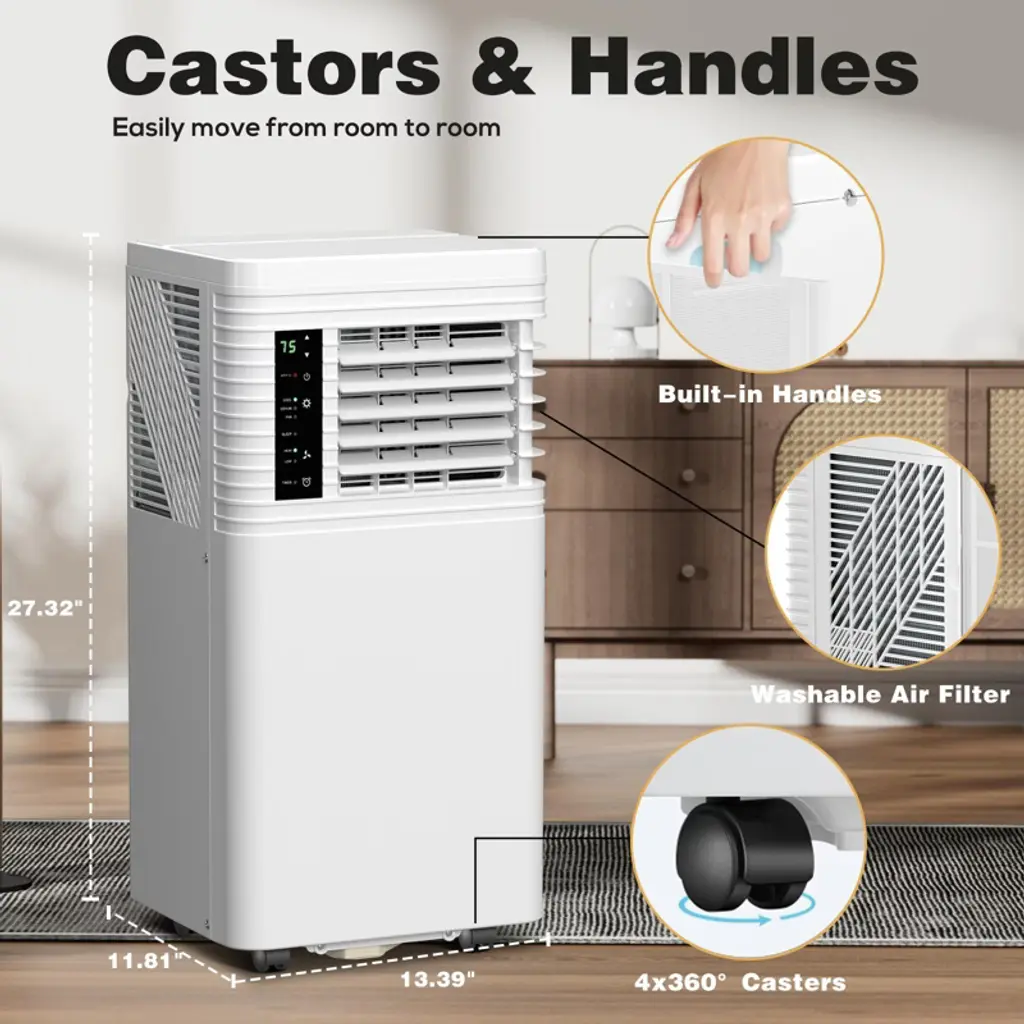 10000 BTU Portable Air Conditioner with Remote, 3 Modes & 2 Fan Speeds, LED Display – White