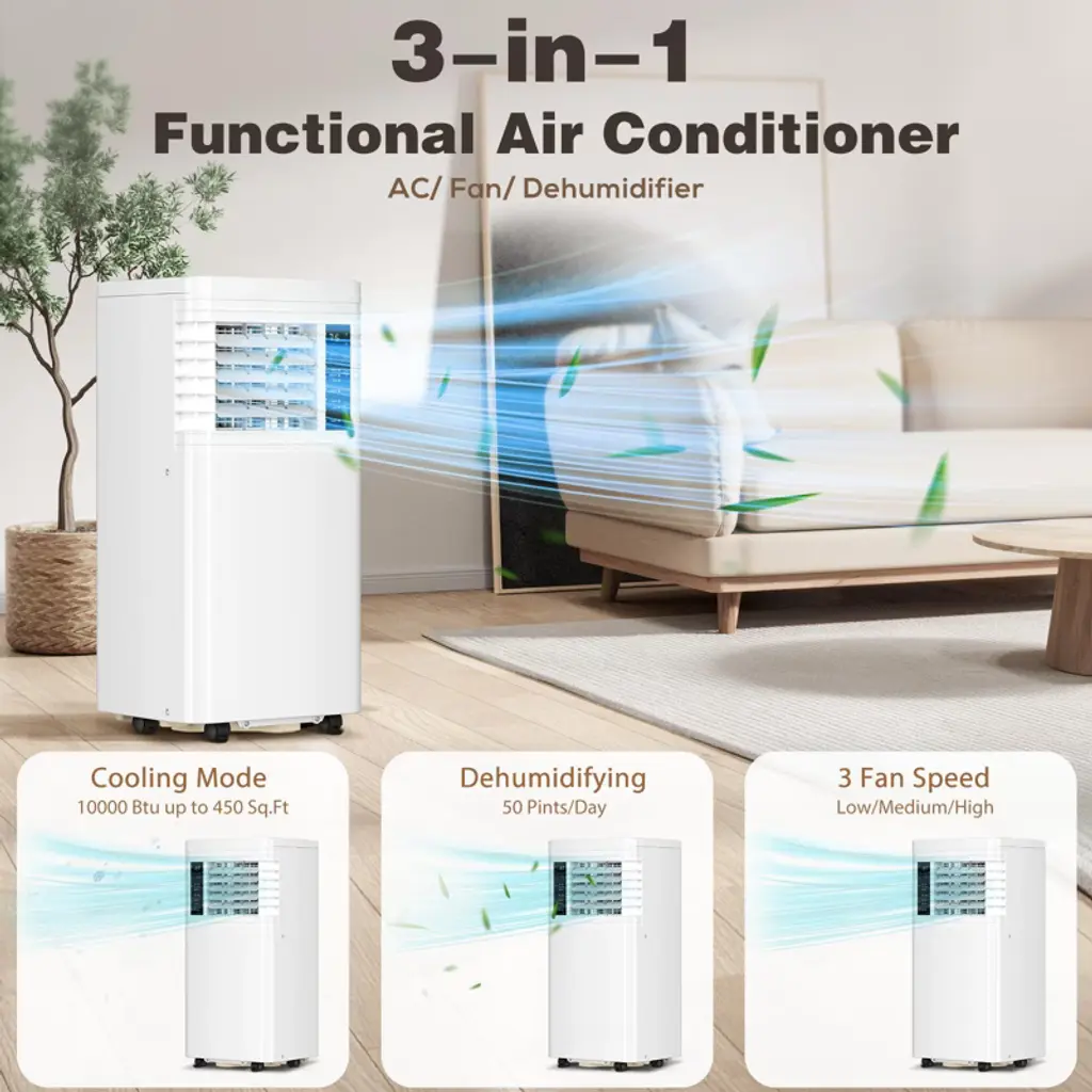 10000 Btu Portable Air Conditioner – 3-in-1 Ac With Remote, 2 Fan Speeds, Led Display – White