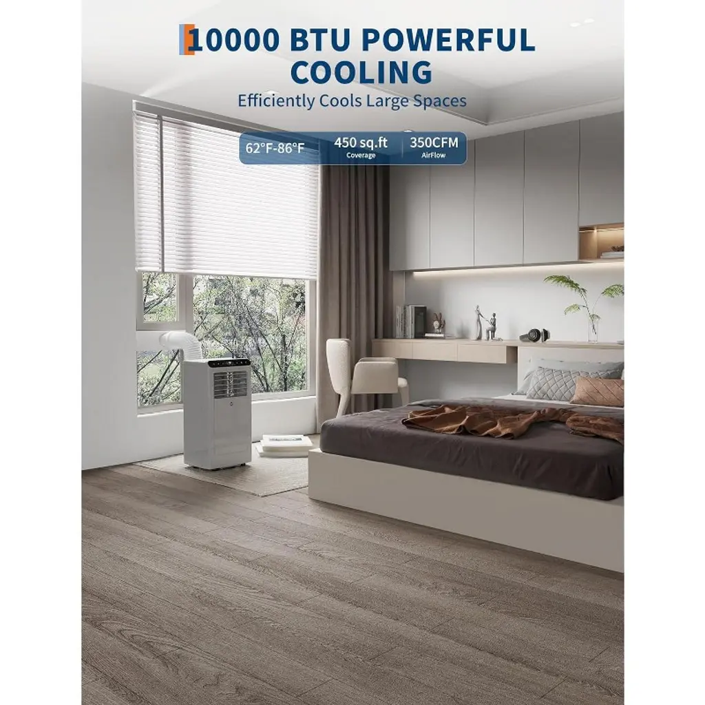 10,000 BTU Portable Air Conditioner, 3-in-1 Portable AC Unit with Fan & Dehumidifier, Room Air Conditioner Cools up to 450 Sq. Ft., Remote Control, Auto Swing, Room AC 24-Hour Timer, Grey