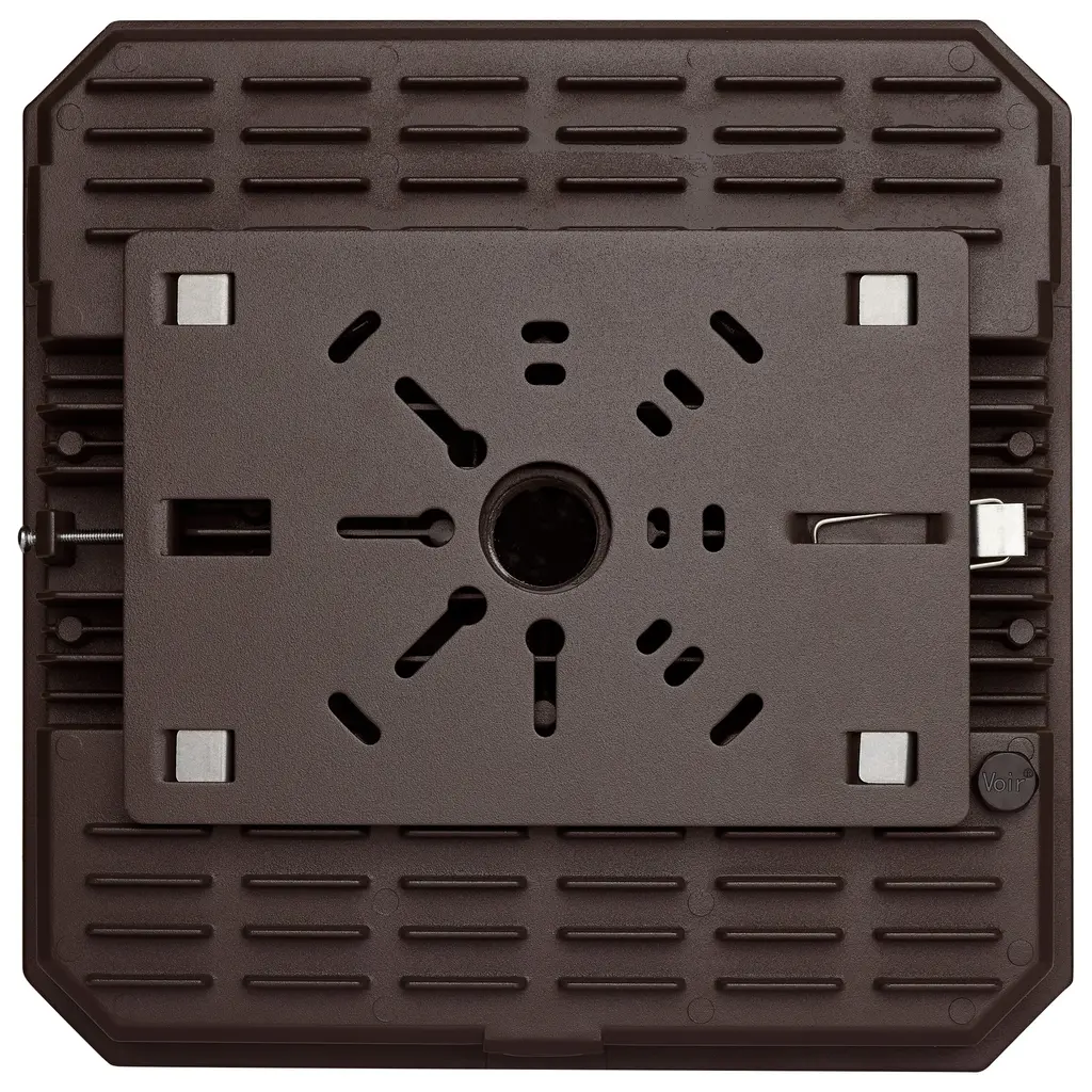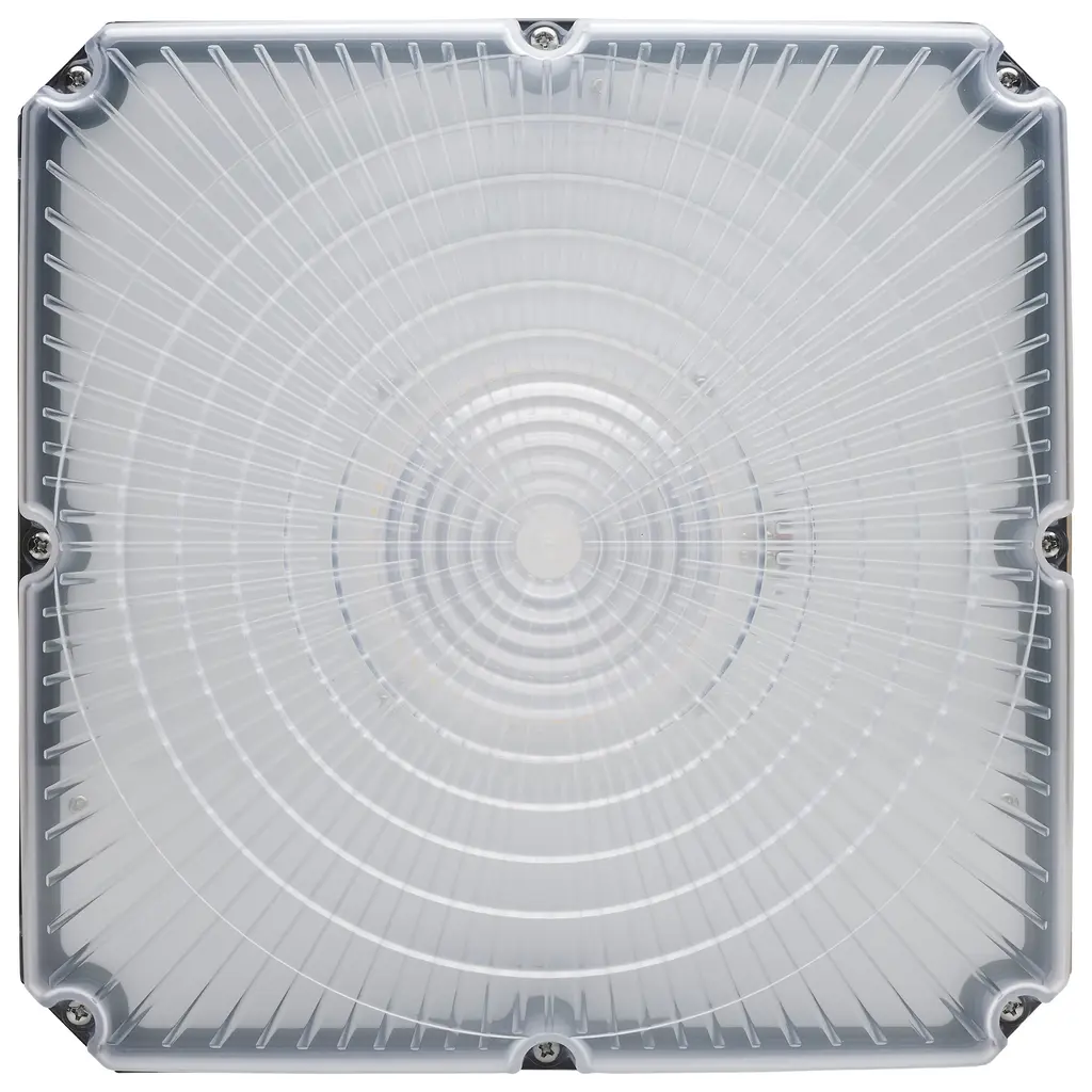 10 Inch LED Field Selectable Canopy Fixture With Sensor - 45/60/70 Watts - 3K/4K/5K CCT - 120-277 Range Voltage. SATCO|NUVO's 65-983 Field Selectable 10 inch square canopy fixture is an ideal choice for multiple applications. This fixture gives users the flexibility to choose from three wattage and three CCT options during installation. It also features an integrated microwave sensor, enhancing energy efficiency and providing added functionality. With a choice of surface mounting using the hinged universal bracket or 3/4-inch pendant mounting, installation of this luminary is a breeze. The two side knockouts allow for wiring access to be fast and efficient. The sleek bronze die-cast aluminum housing, the IK08 impact-rated vandal-resistant polycarbonate lens, and the IP65 wet location rating ensure reliable illumination even in the most adverse weather conditions.
