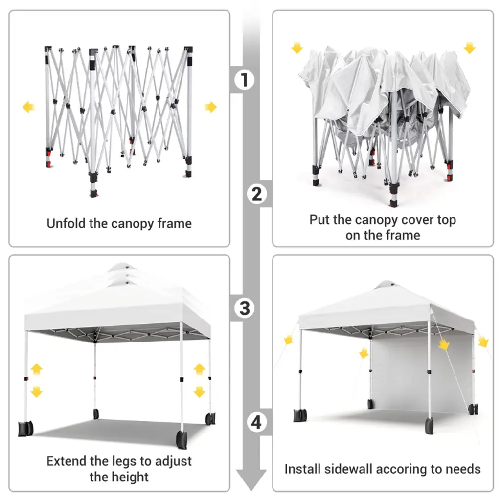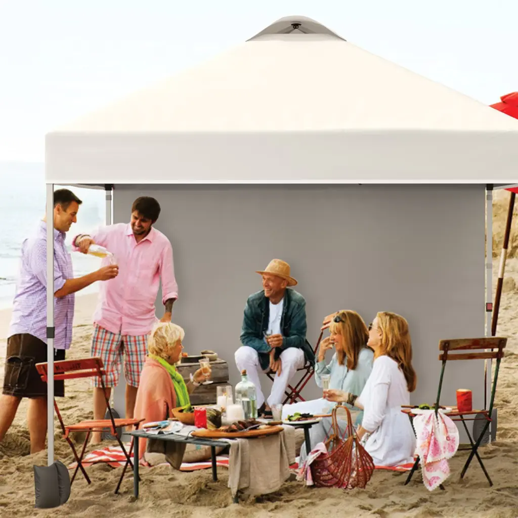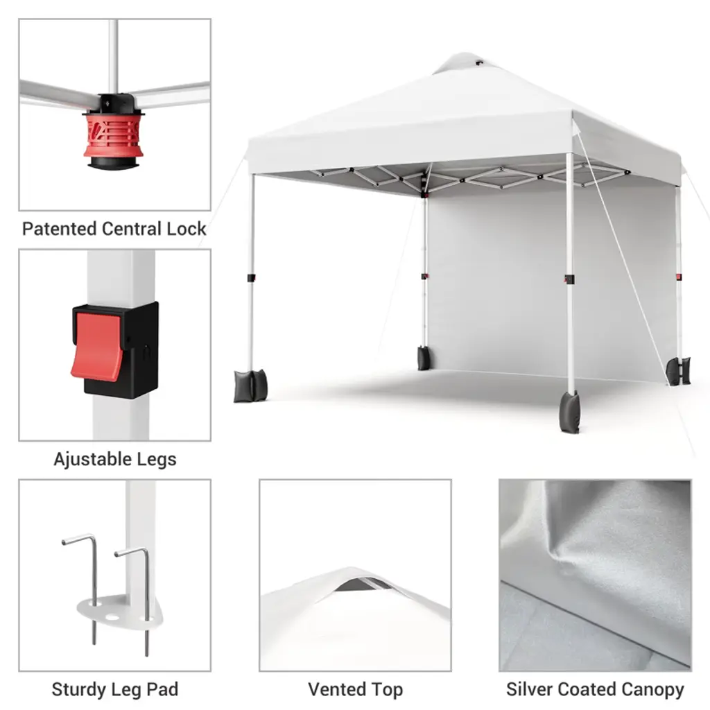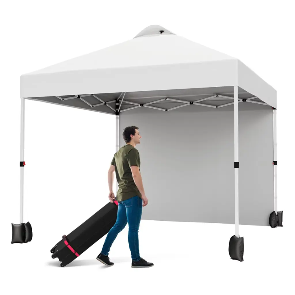 10x10 Ft Portable Canopy Tent, Commercial Pop Up Canopy With Vented Top Roller Bag, Easy Outdoor Sun Shade For Parties, White