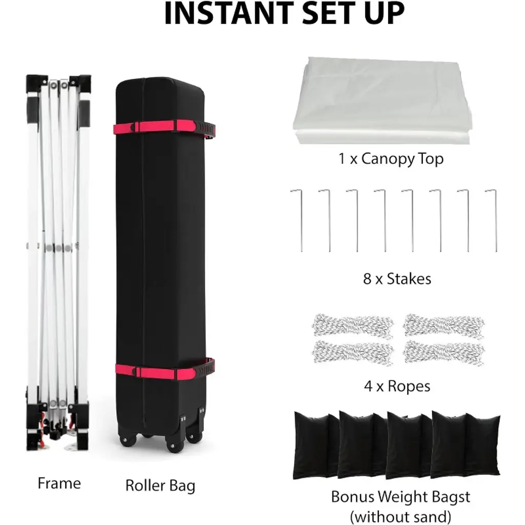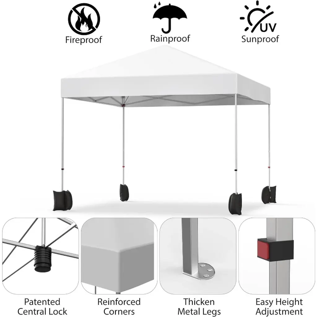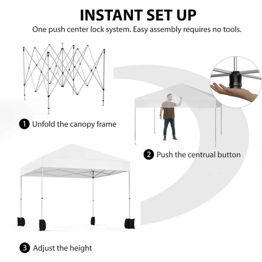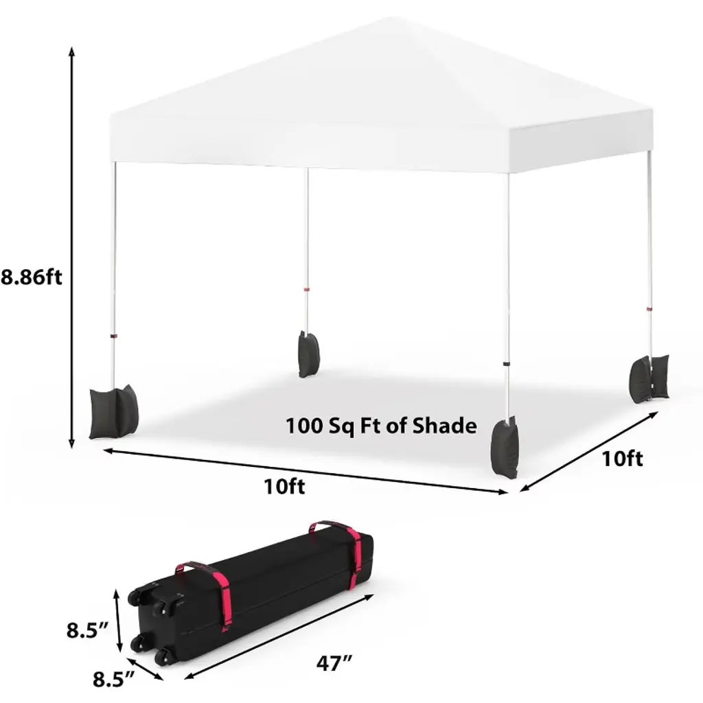 10x10 Pop Up Canopy, Easy Up Outdoor Canopy Tent, Portable Commercial Tent With Roller Bag 4 Sandbags 4 Ropes & 8 Stakes For Camping Picnic Beach
