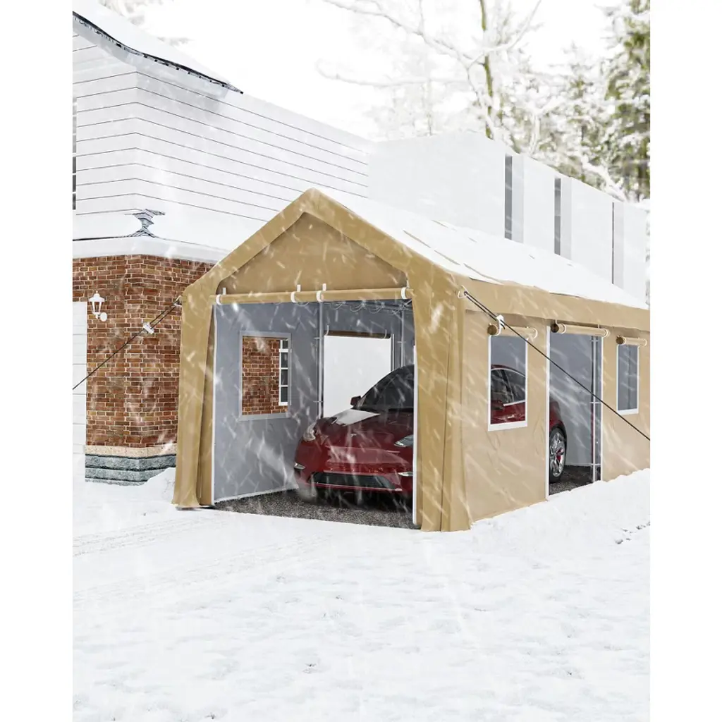 10'x20' Windproof Carport Heavy Duty, Portable Garage With 4 Roll-up Doors,, For Full-size Sedans, Bass Boats, And Suvs