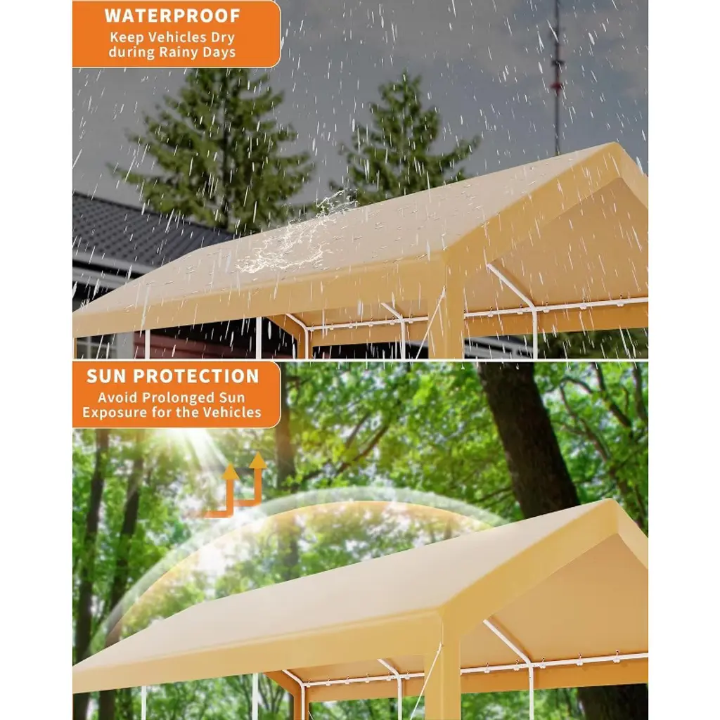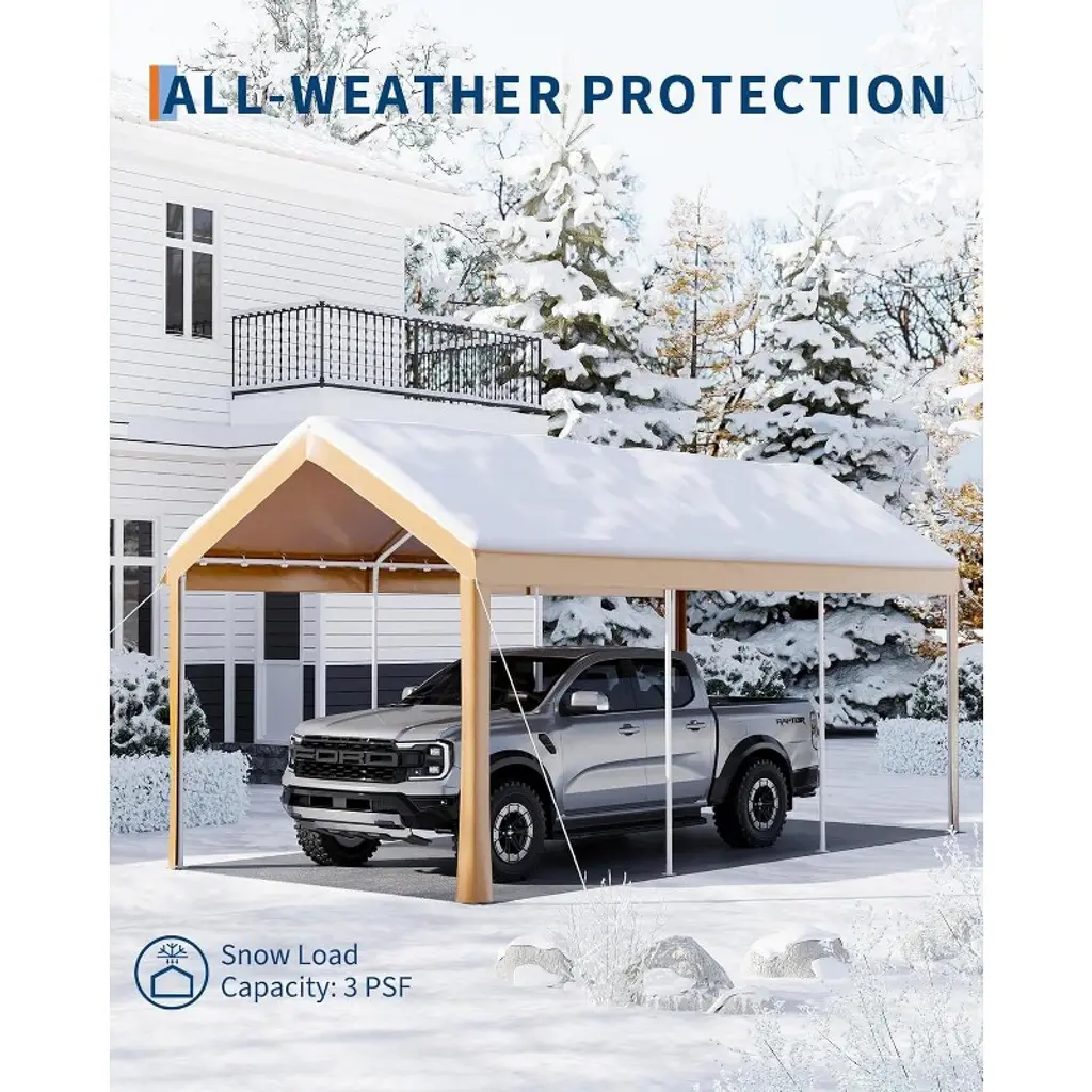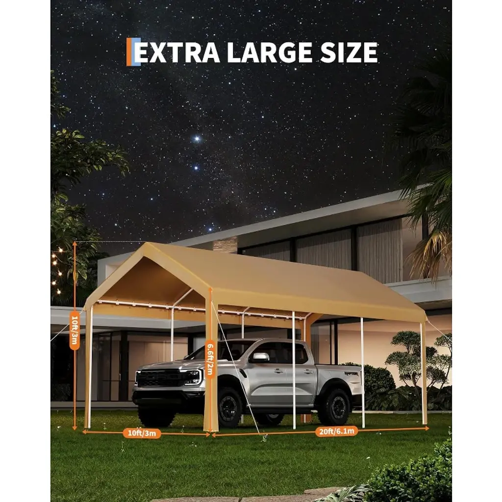 10x20ft Extra Wide Heavy-duty Portable Carport With 8 Legs, Durable Garage Shed Tent For Cars, Trucks, Suvs, All-weather Canopy Cover