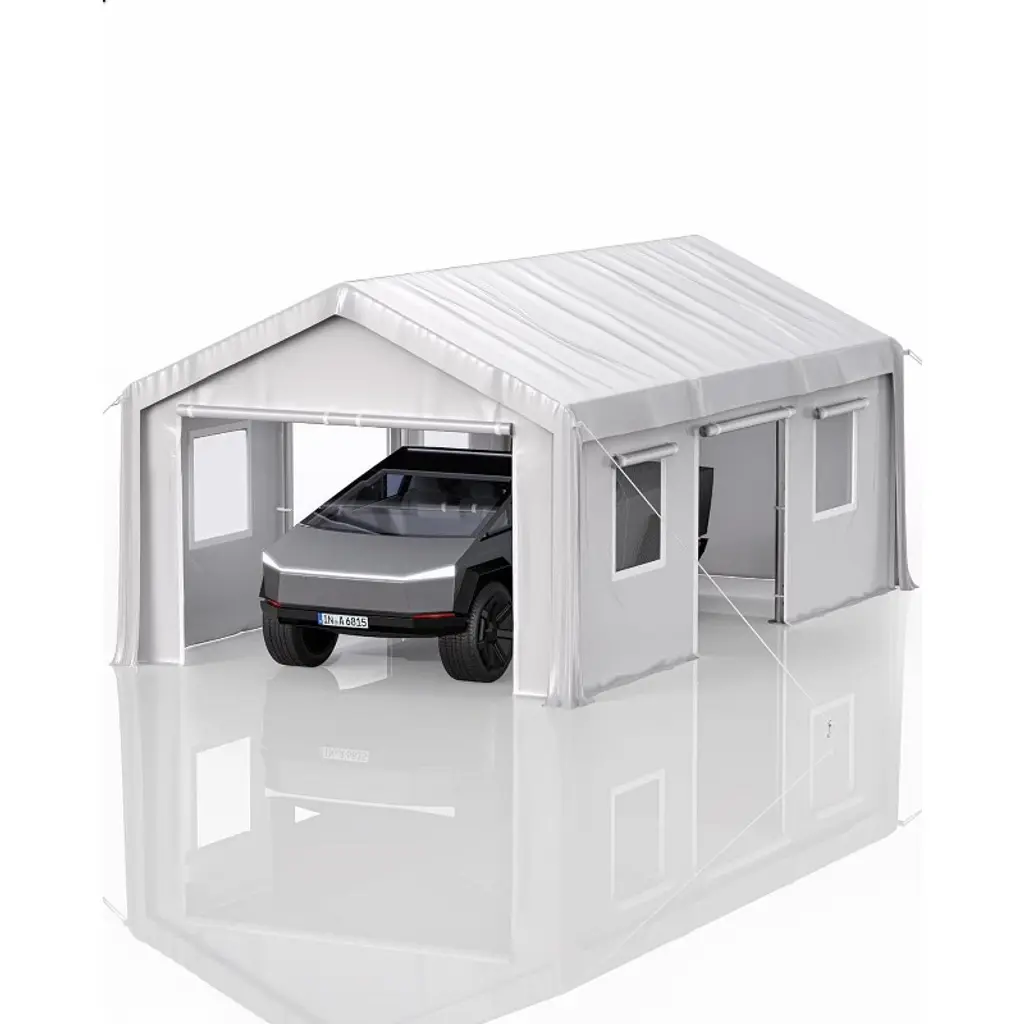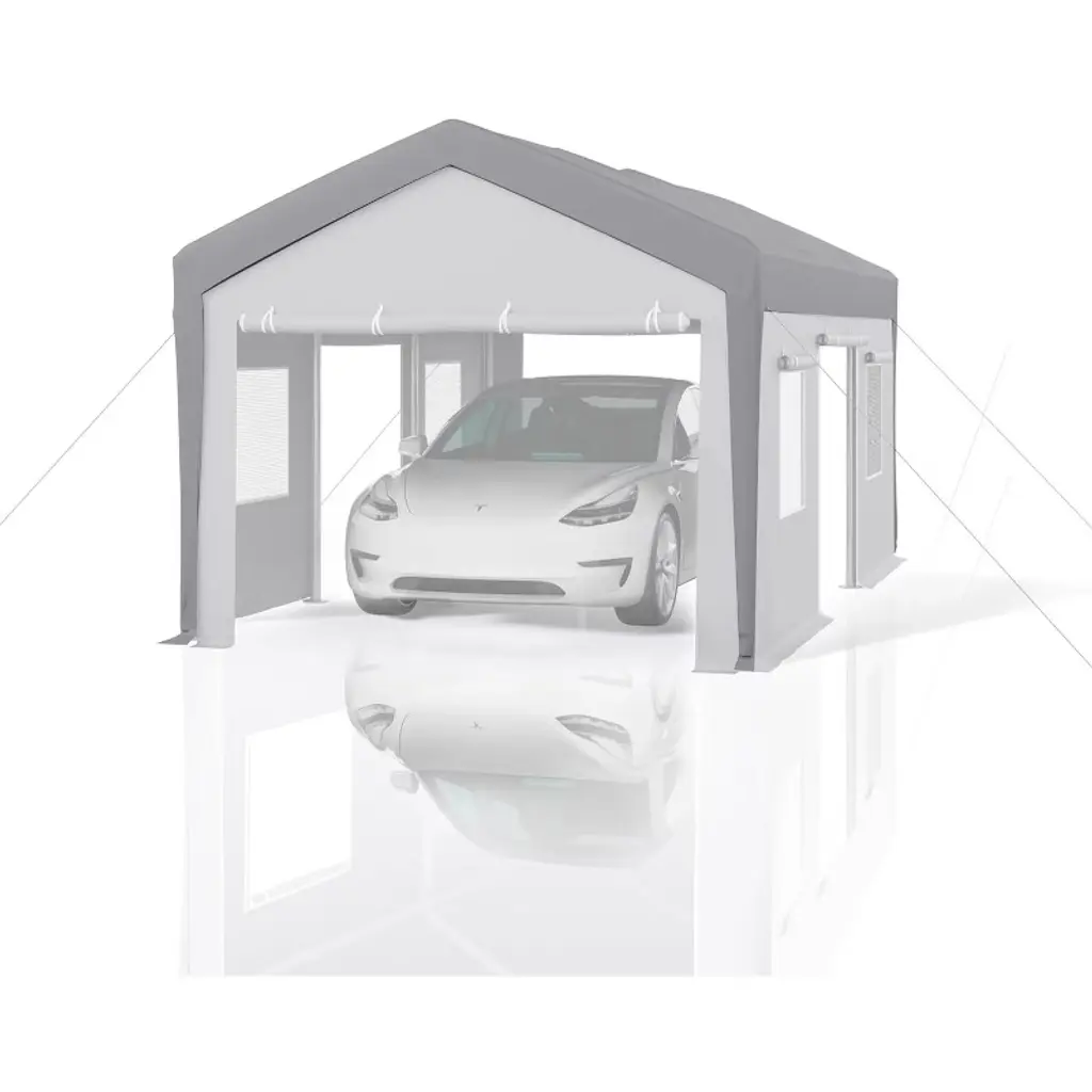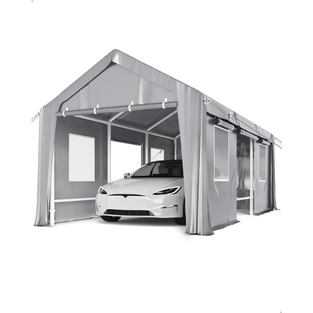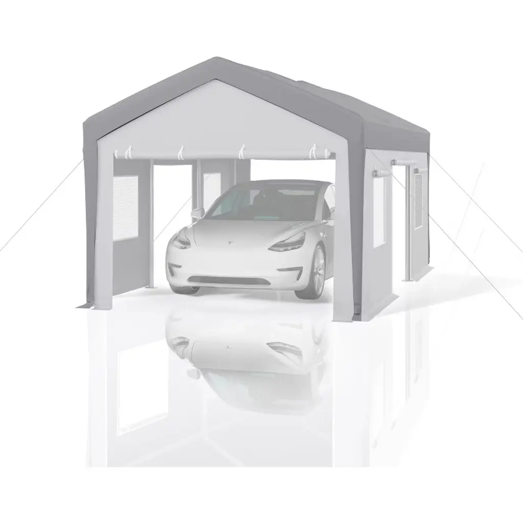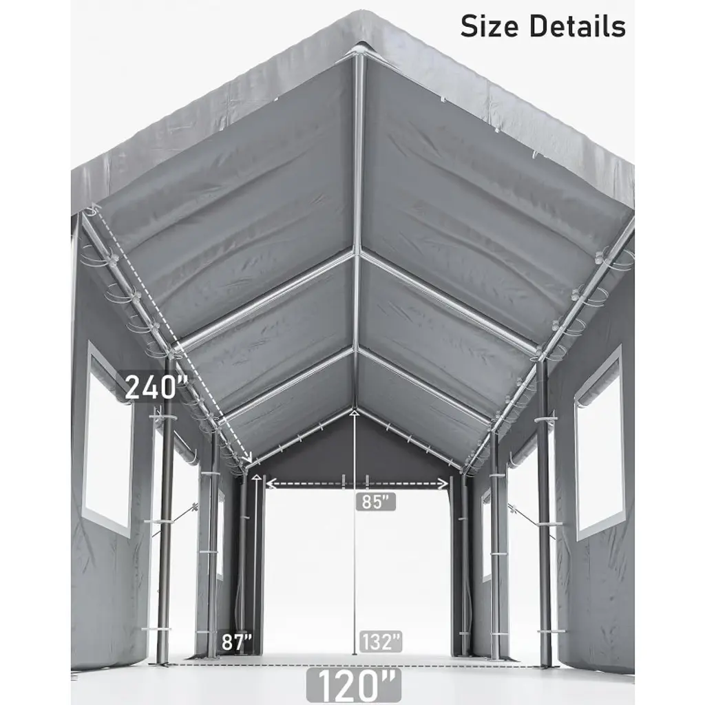 10x20ft Heavy-duty Portable Carport With Roll-up Ventilated Windows, All-season Waterproof, Uv-resistant Canopy For Trucks And Boats - Grey