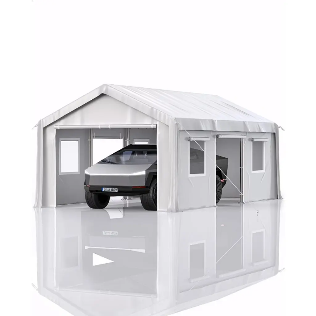【Extra-Large Heavy-Duty Carport, Easy to Install】 - Our portable garage comes with a visual installation manual, making it easy to set up without much effort. We recommend that 2-3 people work together, and it can typically be completed in about 4-5 hours. 【Air Circulation, Unique Design】 - Stay cool and dry under our garage with its innovative design featuring four double-layer ventilated windows and doors to enhance airflow. This prevents moisture accumulation and maintains a comfortable environment, making it suitable for any season. 【Upgraded Carport Poles for Enhanced Stability】 - Our garage is constructed with φ38mm galvanized steel poles with a wall thickness of 0.8mm, ensuring strength and durability for stability. The column legs are powder-coated to resist cracking, peeling, and corrosion, increasing longevity. 【Size Information】 - Length x Width x Height - 20' x 10' x 11', perfect for parking trucks, boats, sedans, and SUVs. It features adjustable side walls and doors, making it an ideal choice for various uses, from vehicle protection to hosting vibrant outdoor events—flexibly appearing wherever needed. 【After-Sales Service for Peace of Mind】 - We offer 24-hour customer service. We provide a 365-day quality guarantee for the poles and canopy cover. For other accessories like connectors, ground pads, stakes, anchors, or elastic bungee cords, we offer a lifetime quality guarantee.