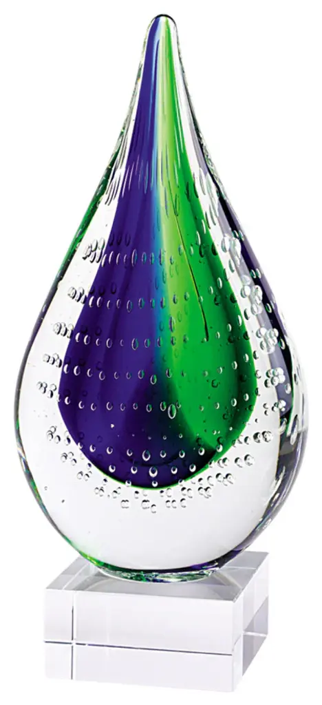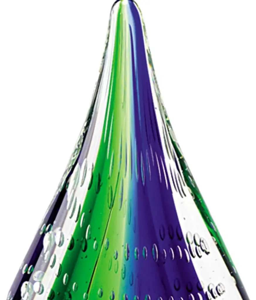 Add an air of fashion to your room and rejuvenate the space with this 11-inch clear blue and green murano glass modern abstract tabletop sculpture. High-quality murano glass used in this clear blue and green sculpture is both good looking and hard wearing. It''s a perfect addition for those who love an up-to-the-minute look and feel. 11-inch H x 3-inch W x 5-inch D