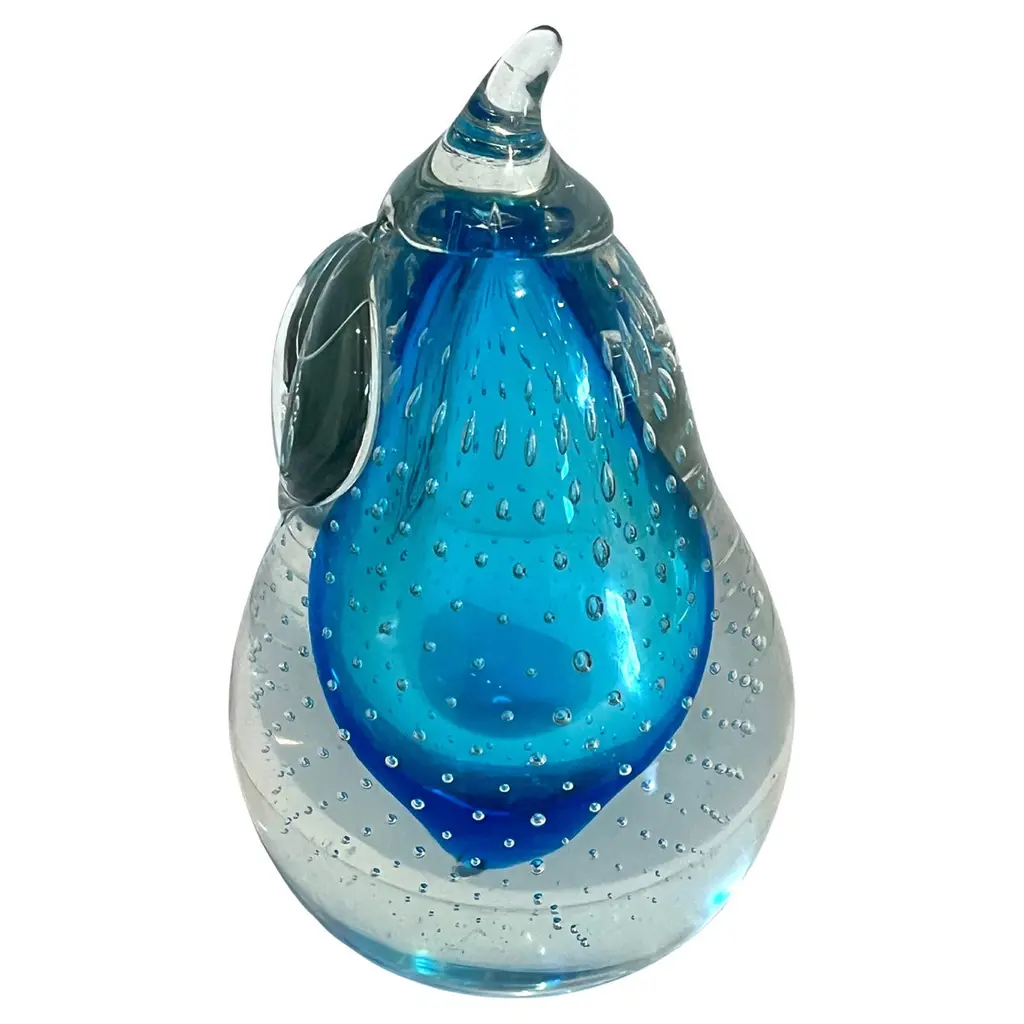 11" Clear Blue And Green Murano Glass Modern Abstract Tabletop Sculpture