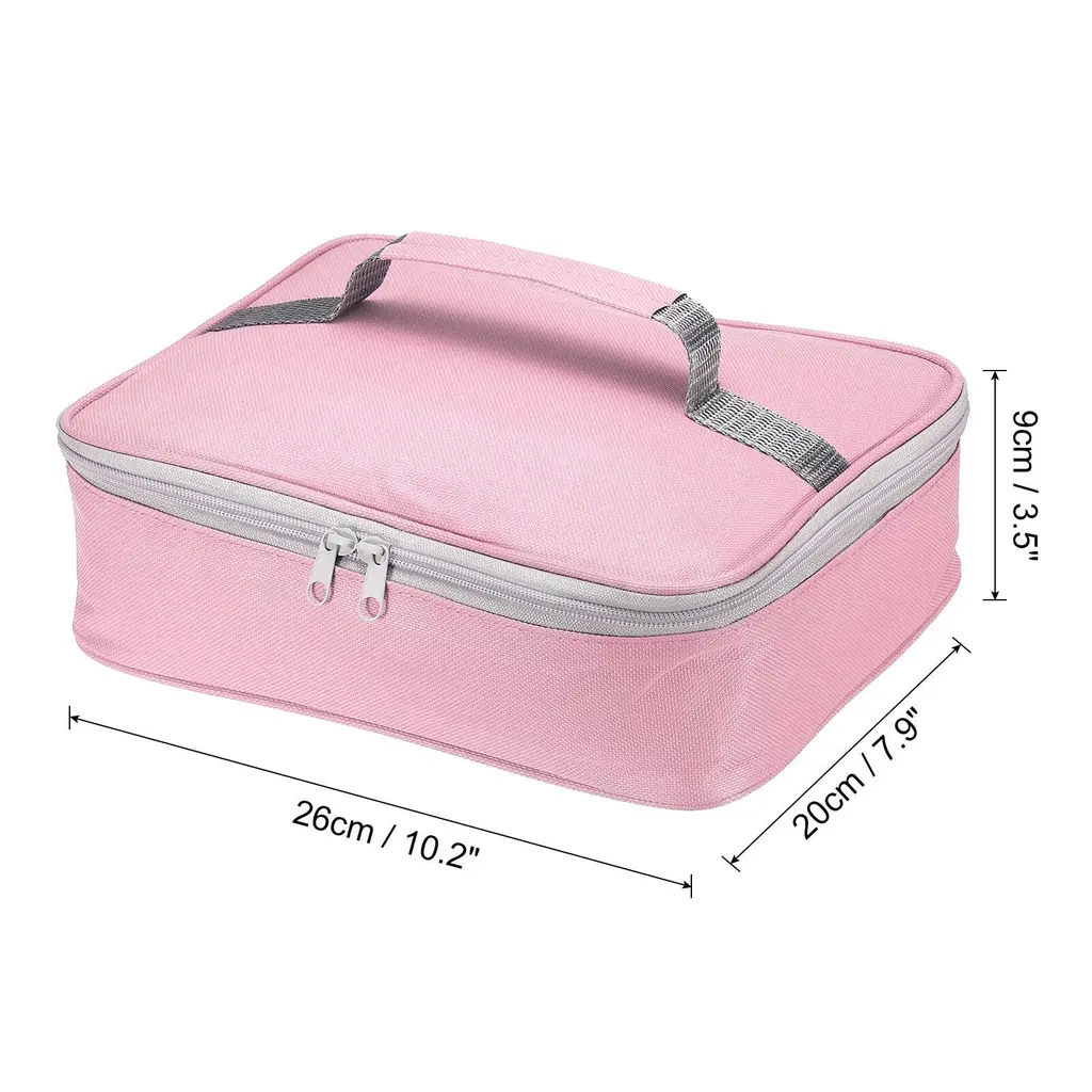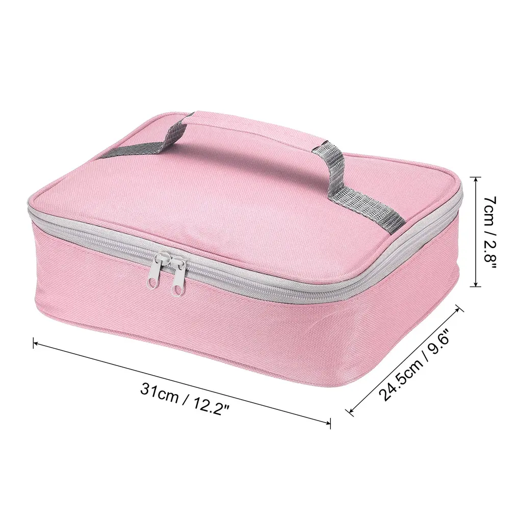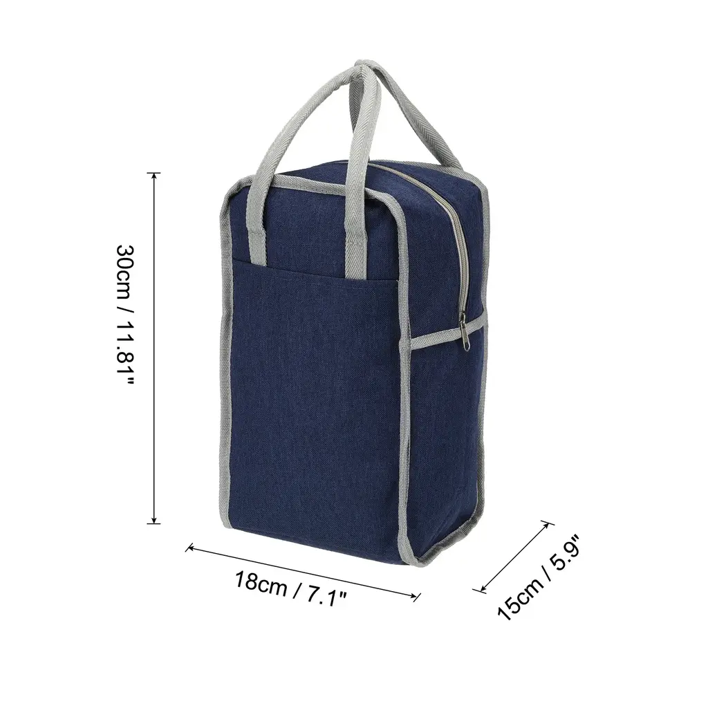 The insulated lunch bag can be used in offices, picnics, camping trips, travel, or any other outdoor activities. You can pack a variety of foods and drinks, including sandwiches, salads, fruits, and more. It is great for keeping your lunch fresh and delicious, no matter where you are.SpecificationColor: Grey, BlackMaterial: Oxford Cloth, Cotton, Aluminum FilmSize: 31 x 24.5 x 7 cm / 12.2 x 9.6 x 2.8 inch(L*W*H)Packing List: 1Pcs x Portable Lunch BagAdvantageThe lunch box bag is made of waterproof Oxford cloth, which is durable and tear-resistant. The interior is equipped with thermal insulation cotton and aluminum film to avoid heat and effectively keep warm and cold, easy to clean.Zipper on the side, easy to open and close. The handle design is convenient for carrying.InstructionPack your favorite foods and drinks into the lunch tote and close it securely. Make sure all closures are properly fastened to prevent spills and leaks. When you are ready to eat, simply open the bag and enjoy your fresh and delicious meal.NOTE:1. After use, wipe down the tote bag with a damp cloth or sponge to clean off any spills or dirt. Let it air dry before storing it away.2. This item is not intended for use by 12 and under.