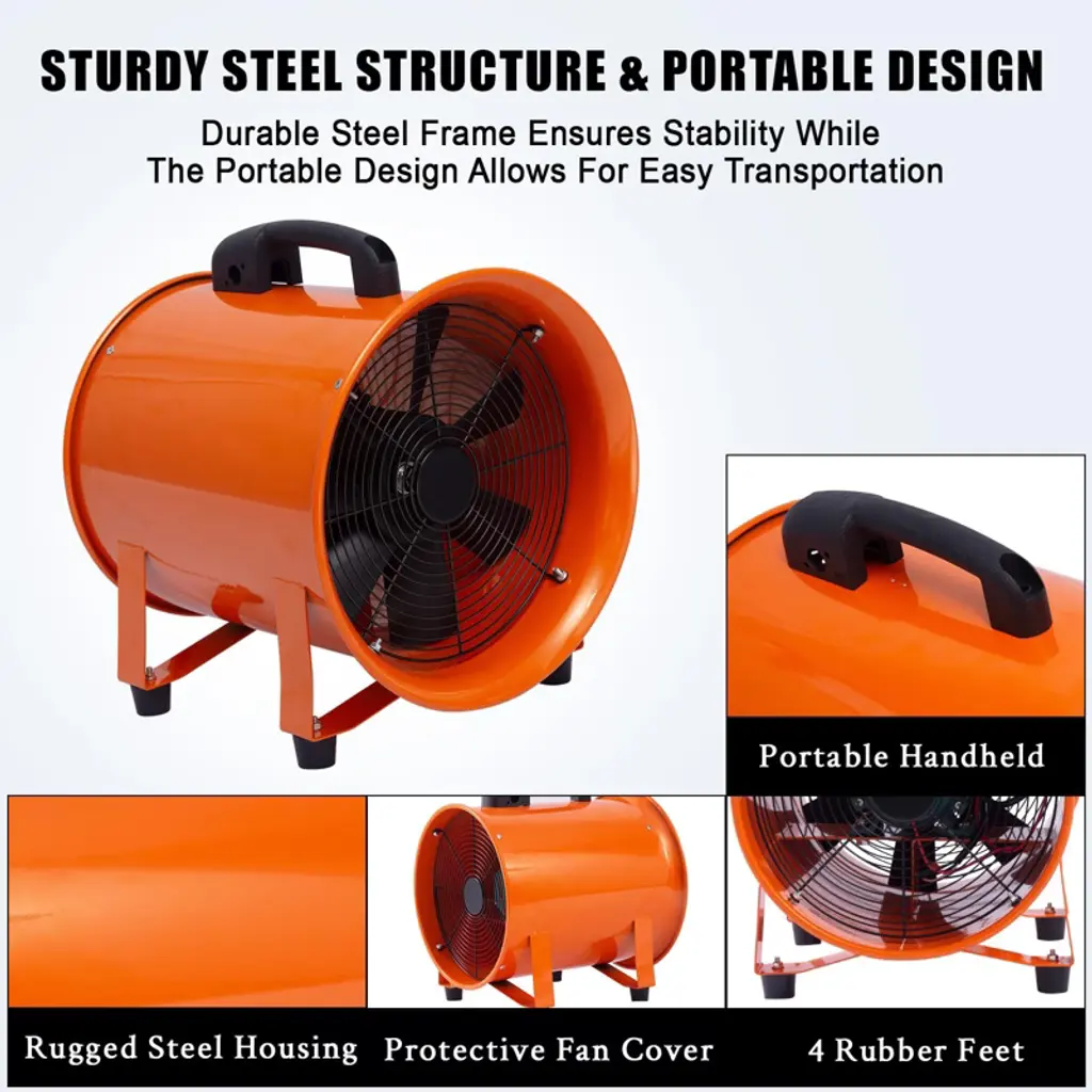 12 Inch Portable Utility Blower Fan, 3500 Cfm Industrial Exhaust Fan With 16.4 Ft Duct, 3500r/min High Velocity Ventilation Fan For Confined Space