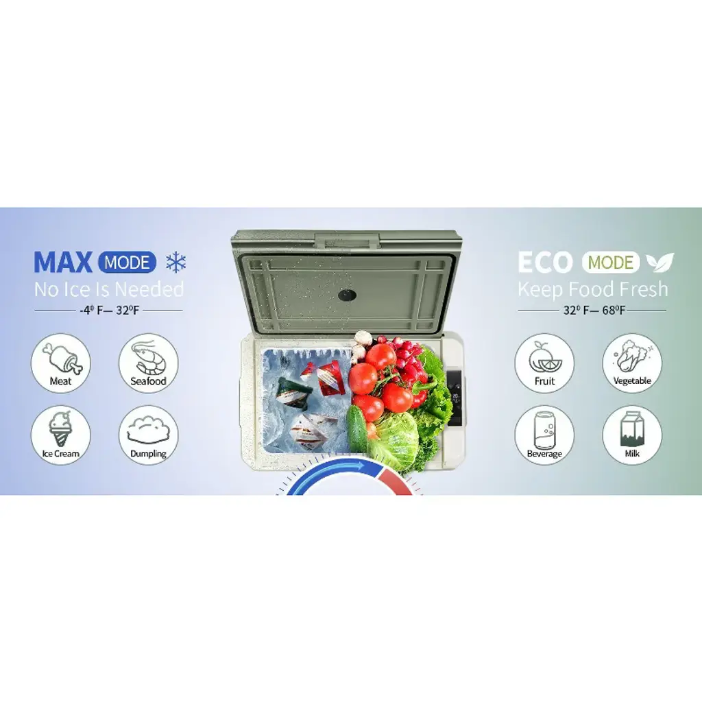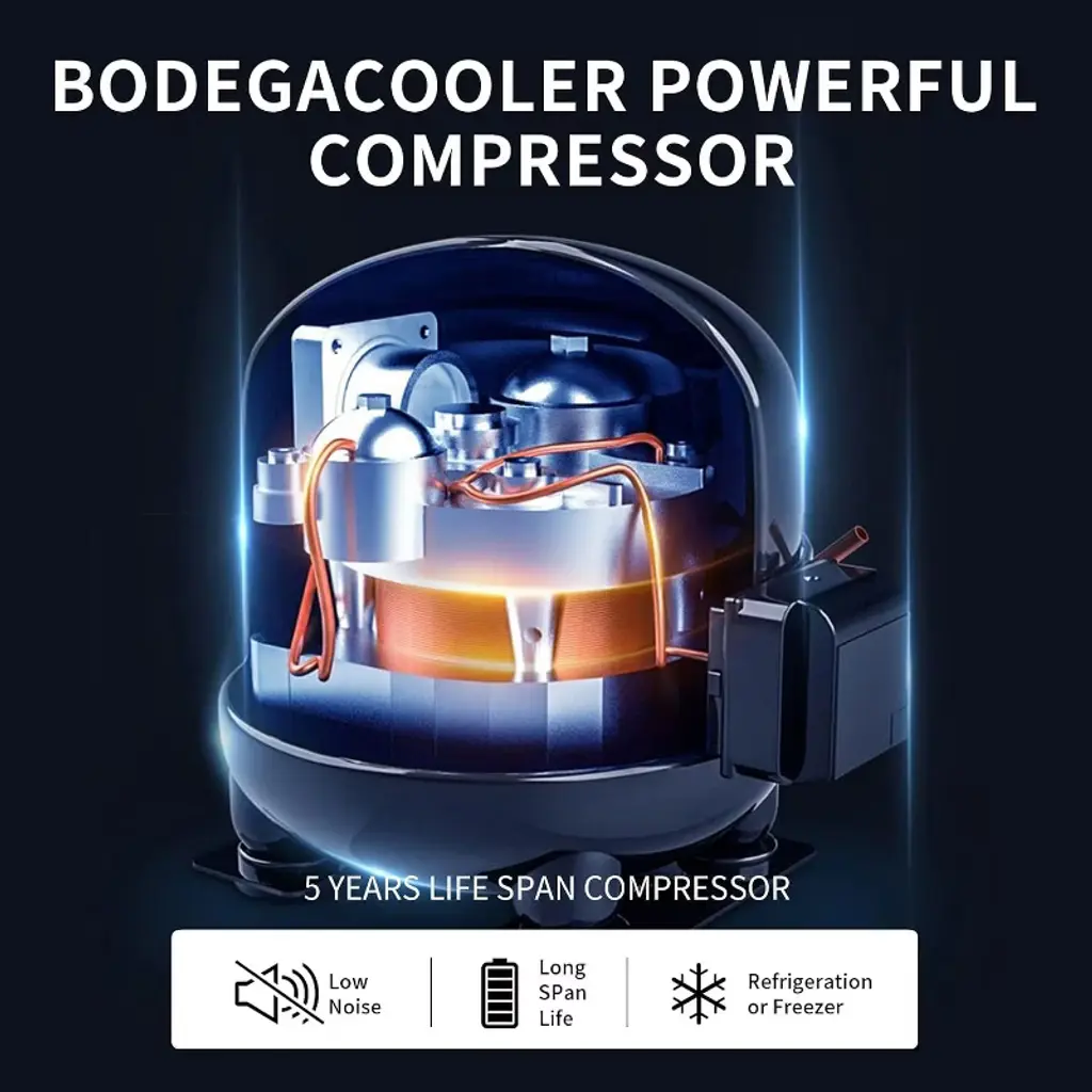 The refrigerator uses ECO energy saving mode for low energy consumption. Car refrigerator supports WIFI APP connection Low noise design, less than 45 dB. The cooler comes with a removable two-way cover that can be easily removed.