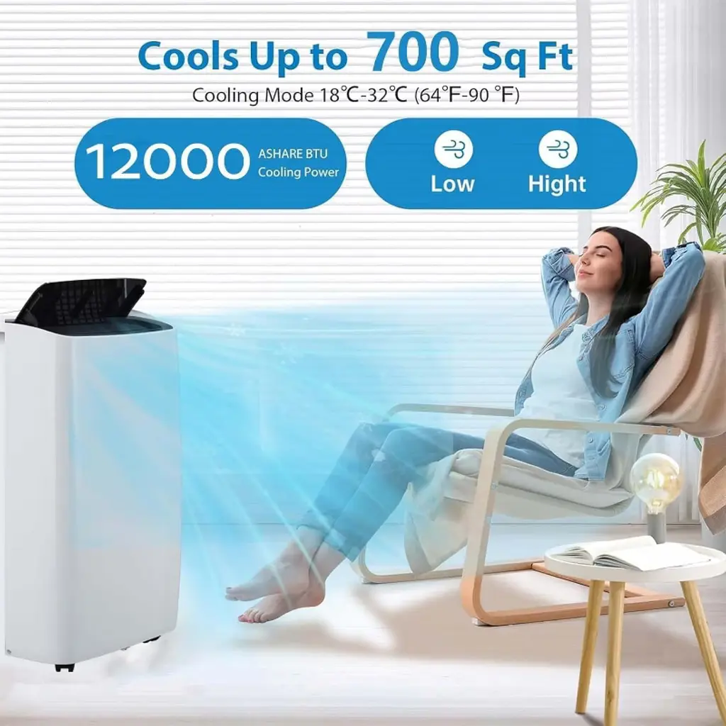 12000 Btu Portable Air Conditioner With 24h Energy Save Timer, Cooling, Dehumidify, 2-speed Fan, Cooling Up To 450-550 Sqft