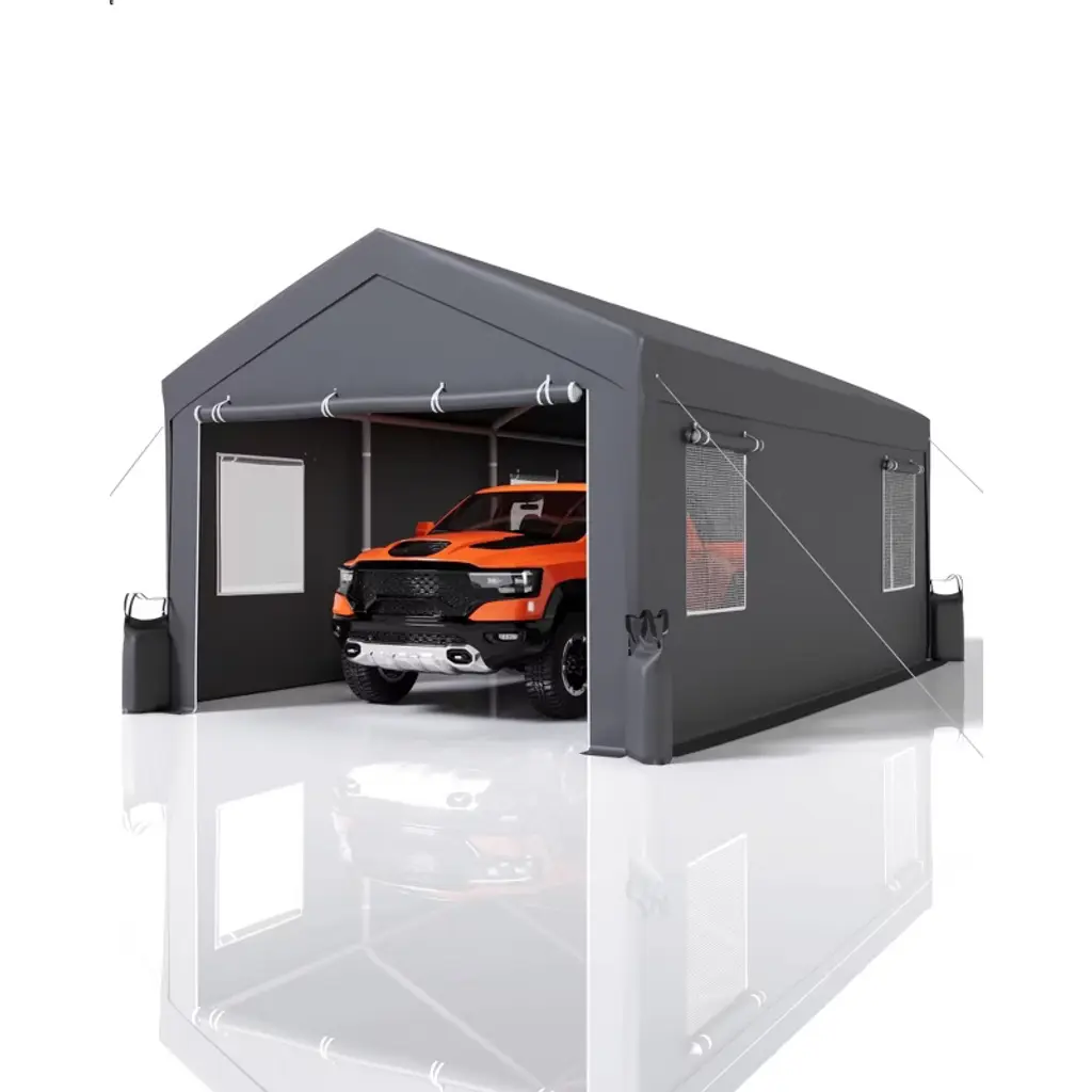 12x20 Ft Carport, Portable Carport With 4 Roll-up Windows,doors,car Port With Pe Tarp, Waterproof & Uv Protected, Anti-snow Portable Garage Kit Tent