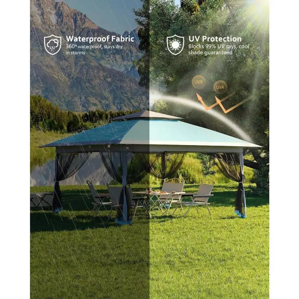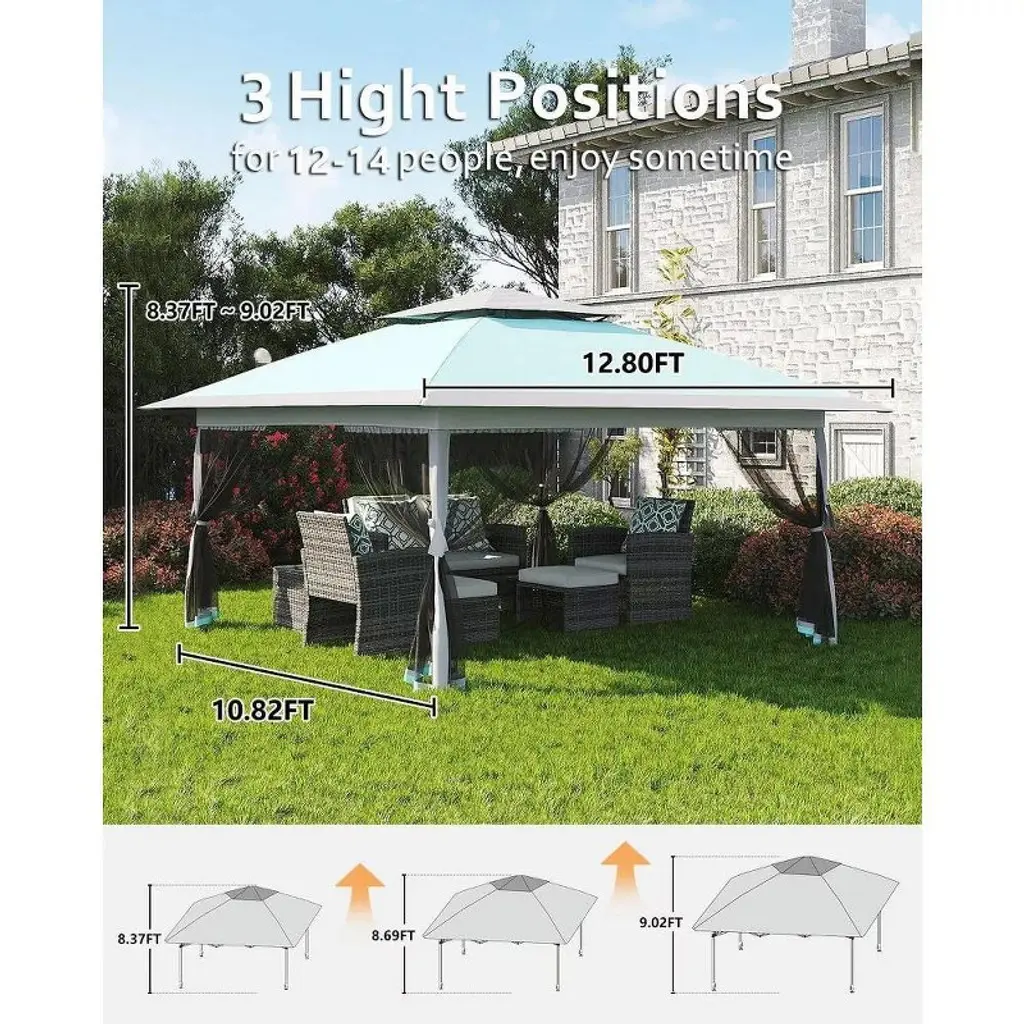 13x13 Ft Pop Up Canopy Tent with Mosquito Netting, Instant Portable Shelter w/ Carrying Bag, Heavy Duty Foldable Gazebo for Outdoor Backyard Parties
