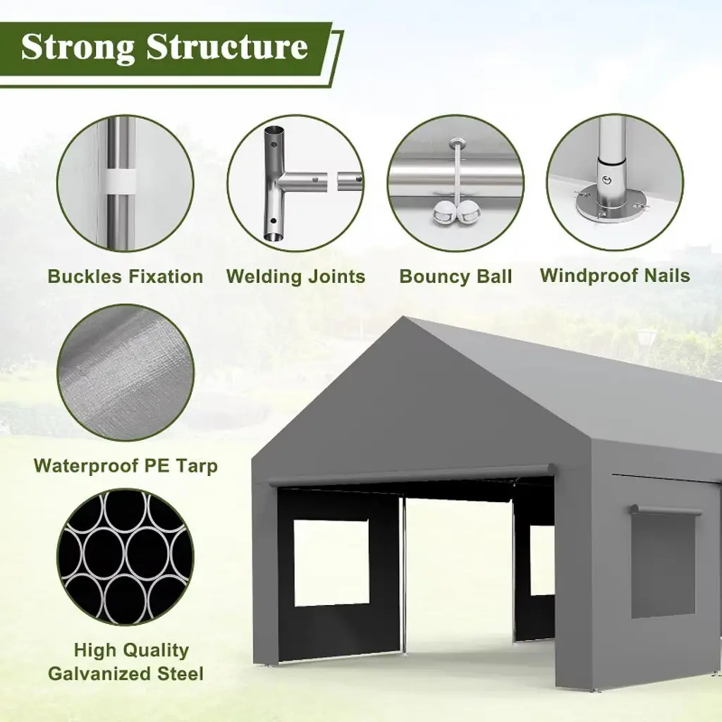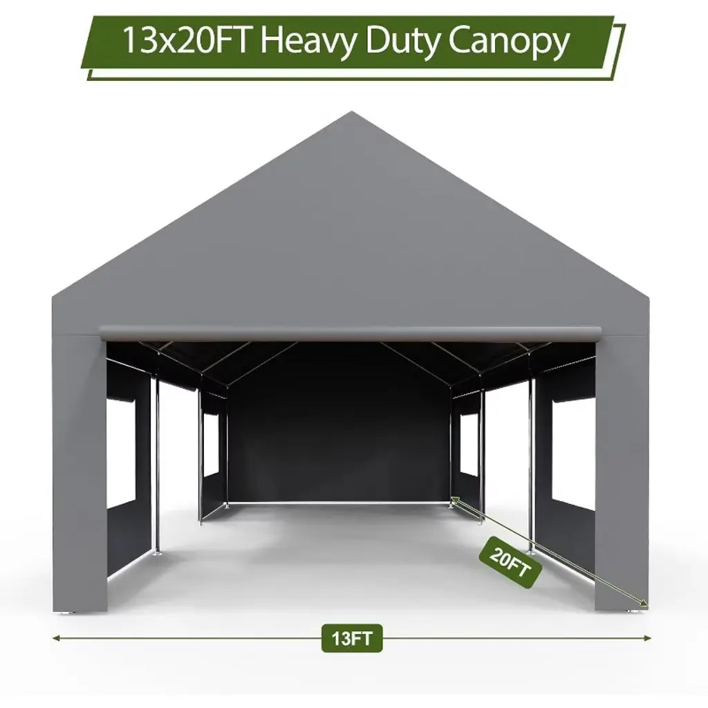 13'x20' Heavy Duty Portable Garage, Oversized Outdoor Shelter With 4 Doors & Windows, Reinforced Frame Canopy For Vehicles, Events & Storage