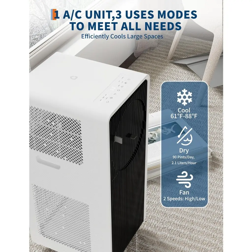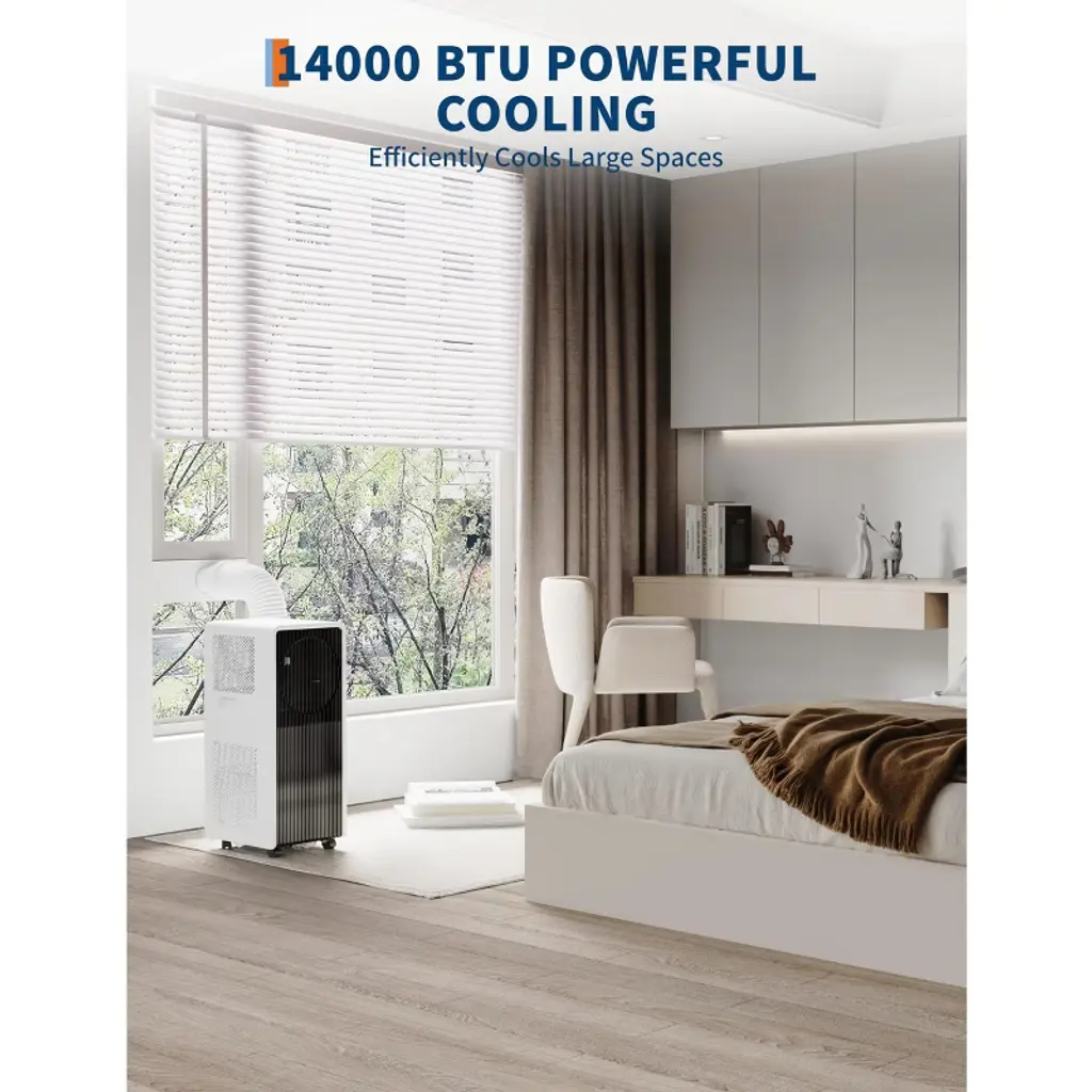 14,000 BTU Portable Air Conditioner with Remote Control - 3-In-1 Drainage-Free AC Unit with Dehumidifier & Fan
