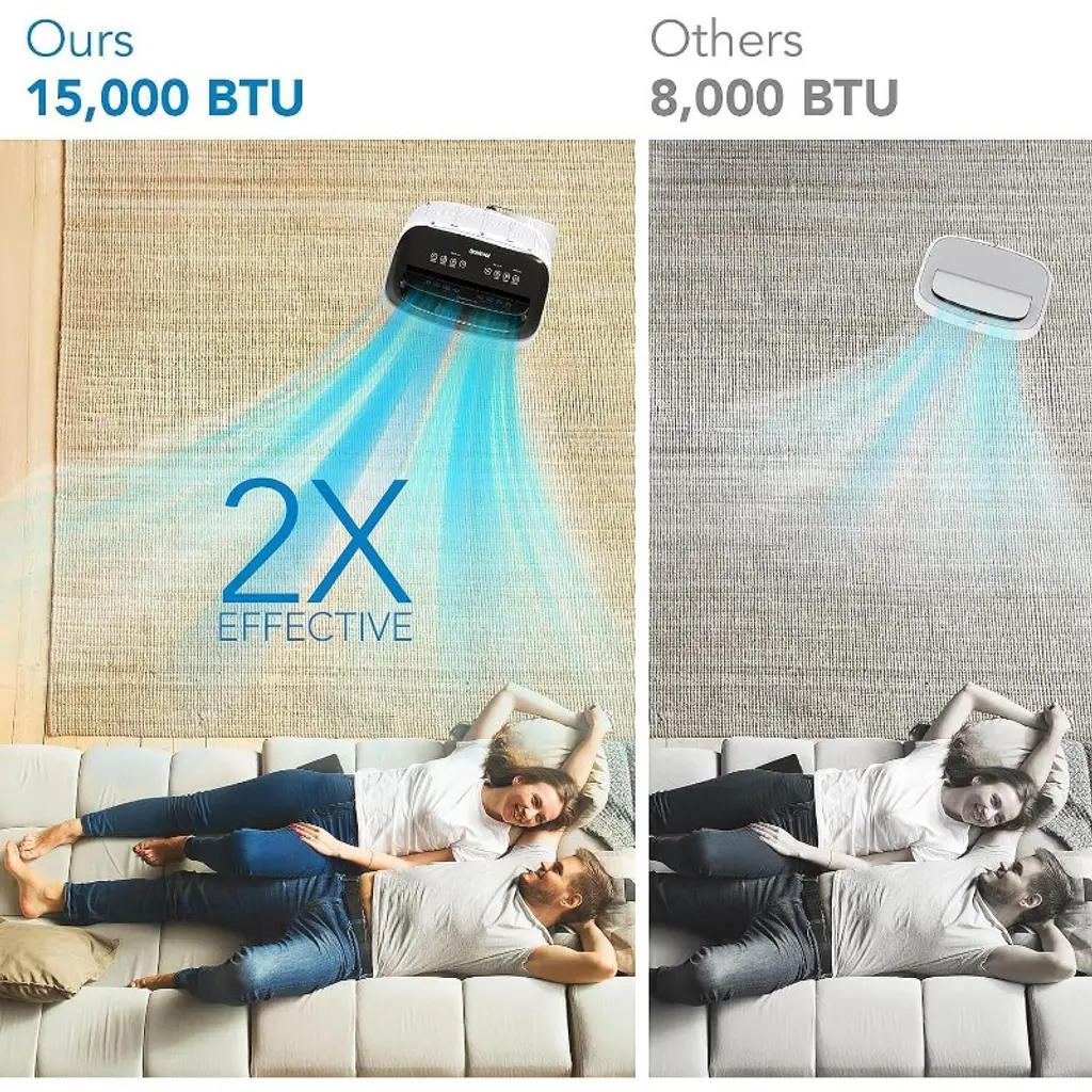 Experience rapid and efficient cooling with this high-performance 15,000 BTU portable air conditioner, designed to effectively cool large rooms up to 850 sq.ft. Perfect for bedrooms, offices, kitchens, and living spaces, this 3-in-1 unit combines powerful cooling, dehumidification, and fan functions for year-round comfort.Key Features & Benefits:1. Ultra-Powerful Cooling ¨C 15,000 BTU (ASHRAE) capacity delivers fast, consistent cooling for spaces up to 850 sq.ft, with a high airflow of 560 m3/h for maximum efficiency.2. 3-in-1 Versatile Operation ¨C Switch between cooling, dehumidifying, and fan modes to maintain ideal comfort in any season.3. Energy-Efficient & Cost-Saving ¨C Designed with low power consumption to reduce electricity bills while maintaining high performance.4. Quiet & Sleep-Friendly ¨C Advanced 2024-generation compressor ensures low noise levels (¡Ü50 dB), with a sleep mode for undisturbed rest.5. Smart & Convenient Controls ¨C Adjust settings easily via the digital display or included remote control, featuring a 24-hour programmable timer for automated operation.6. Self-Evaporative System ¨C No manual drainage required; automatic condensate evaporation ensures hassle-free maintenance.7. Easy Installation & Mobility ¨C Includes full window installation kit (compatible with sliding or hung windows) and four smooth-rolling casters for effortless room-to-room portability.8. Washable & Reusable Filter ¨C Slide-out air filter traps dust and allergens; simply rinse and reuse for improved air quality and efficiency.Included Accessories: 1 x Portable AC Unit 1 x Exhaust Hose 1 x Window Installation Kit 1 x Remote Control (batteries may/may not be included) 1 x Washable Air Filter 1 x User Manual Technical Specifications: Cooling Capacity: 15,000 BTU (ASHRAE) Coverage Area: Up to 850 sq.ft Airflow: 560 m3/h (high-efficiency circulation) Noise Level: ¡Ü50 dB (quiet operation) Modes: Cooling / Dehumidifier / Fan Thermostat Range: Adjustable (exact range per manual) Dimensions: (Check manual for exact size) Weight: Heavy-duty yet portable with wheels Why Choose This Portable AC? Powerful enough for large rooms (up to 850 sq.ft) Whisper-quiet operation for bedrooms & workspaces No messy drainage ¨C self-evaporative system Easy to move & install ¨C perfect for renters & homeowners Stay cool, save energy, and enjoy effortless climate control with this high-capacity portable air conditioner¡ªideal for summer heat relief in any living or workspace!