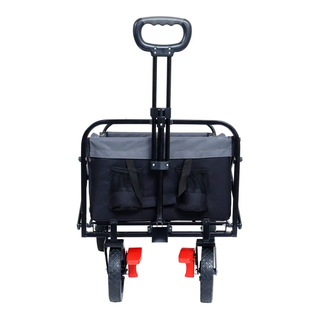 150l Collapsible Wagon Cart Foldable, Utility Garden Wagon With 360lbs Weight Capacity, Heavy Duty Portable Sport Wagon - Black