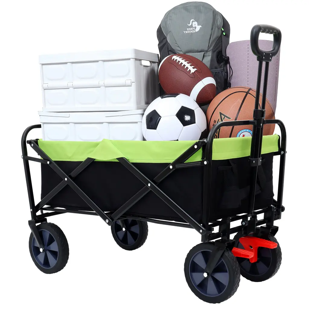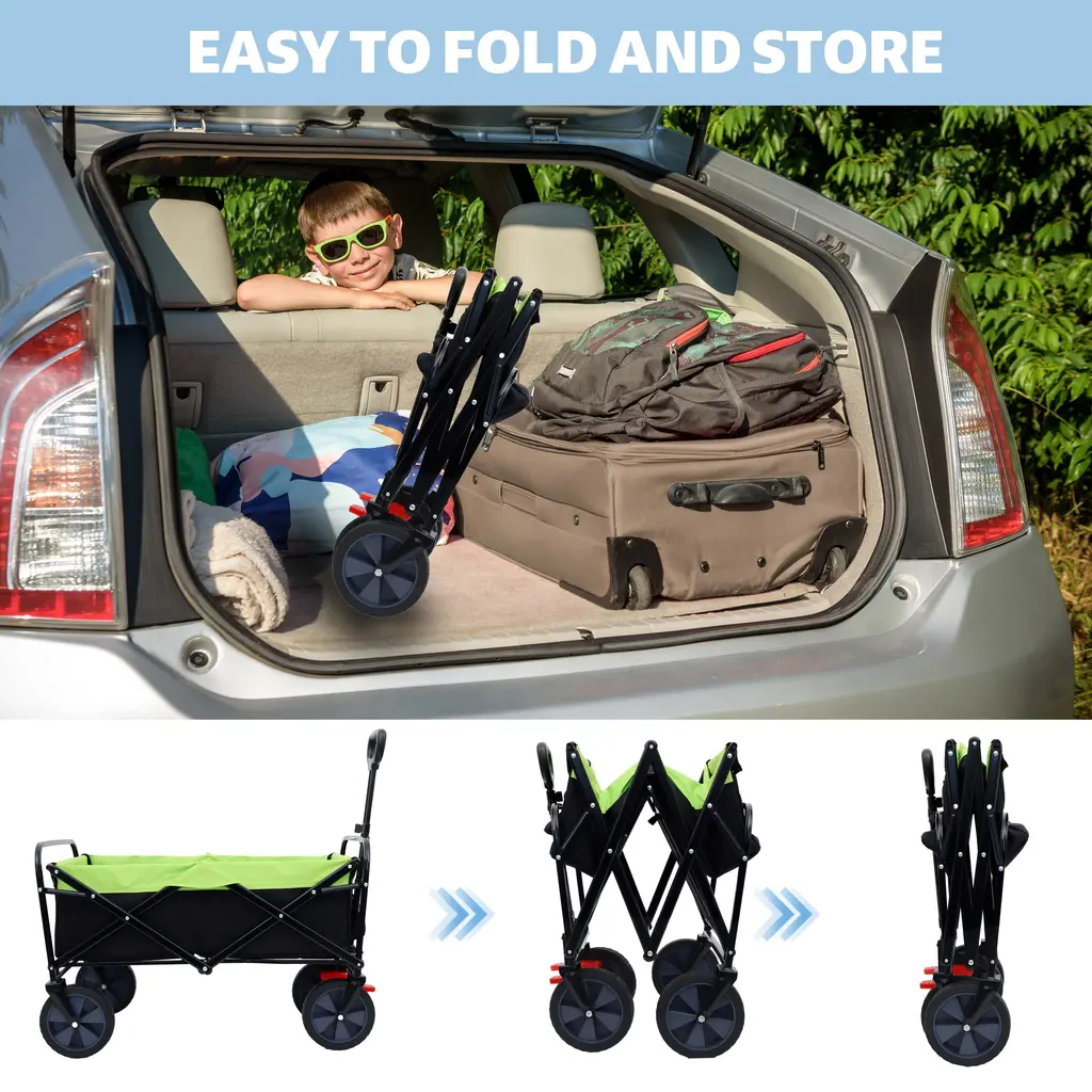 150l Collapsible Wagon Cart Foldable, Utility Garden Wagon With 360lbs Weight Capacity, Heavy Duty Portable Sport Wagon - Black