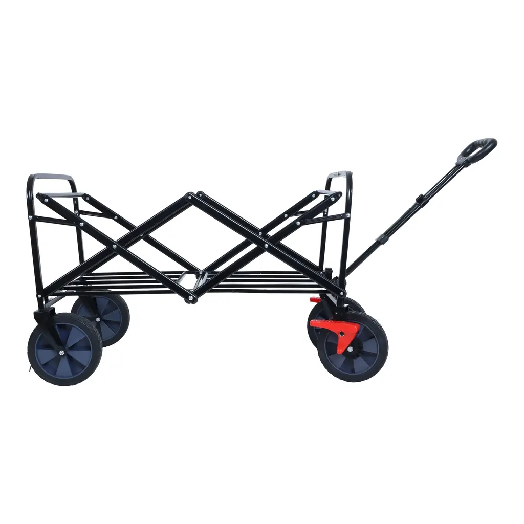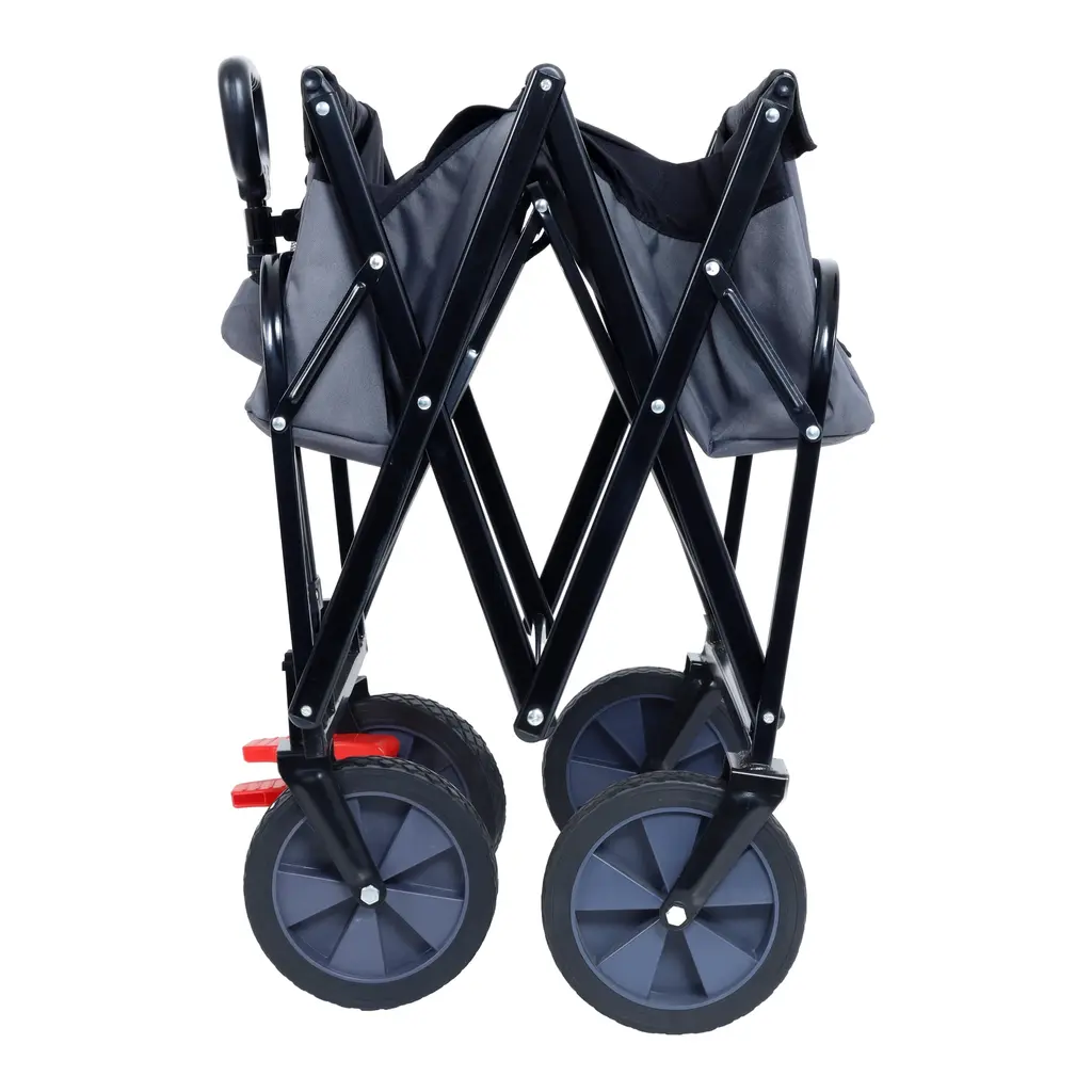 150l Collapsible Wagon Cart Foldable, Utility Garden Wagon With 360lbs Weight Capacity, Heavy Duty Portable Sport Wagon - Black
