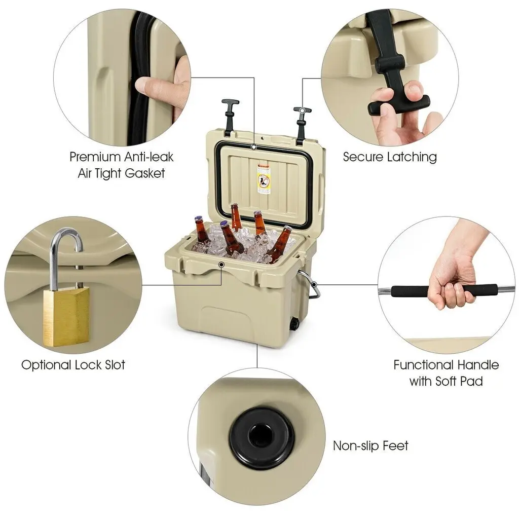 16 Quart Portable Ice Cooler With 24 Cans - 18" X 13.5" X 13" (L X W X H) - Khaki