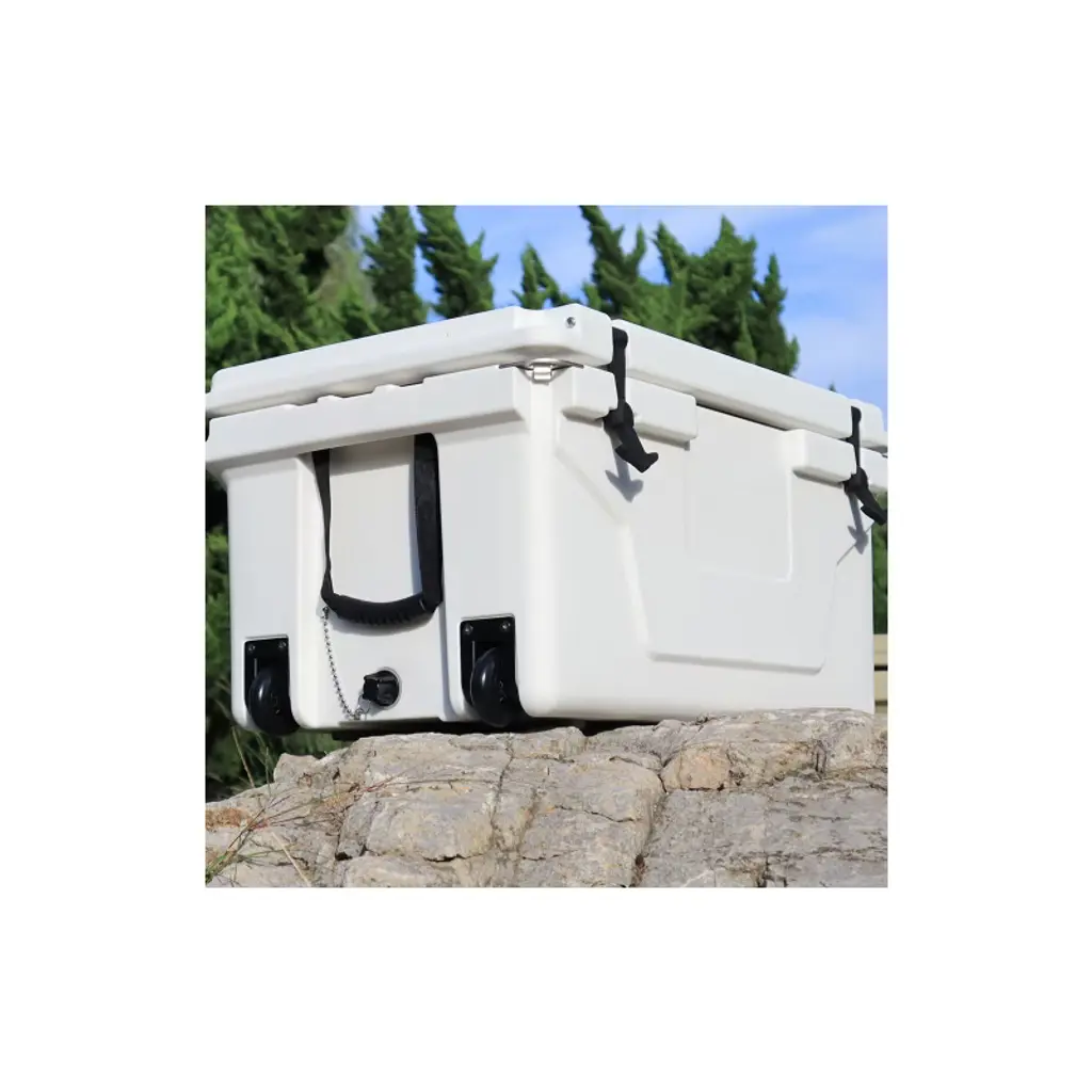 SpecificationsKey Features● Excellent Insulation: Premium PU insulating materials plus an all-in-one structure that maximizes insulation and keeps the ice-cold for up to four days. In addition, this cooler is dual-use, it can not only be refrigerant but is also warmer. ● Lightweight and Portable Design: The comfortable stainless steel handle helps you to carry it here and there, making instant fresh food can even become true during your outdoor activities and lightweight design for easy carrying. ● Wide Application of Large Capacity: This cooler has a large capacity, and can accommodate 24 cans (no ice added). Its sturdy construction will also stand up to the rigors of your journey. ● Durable Enough: This cooler is made of premium PE and PU, which is brittle-resistant and offers superior insulation and strength. In addition, the rot molded bear-resistant construction can handle up to 1102 pounds, making it indestructible. ● Utility Design: The cooler includes 2 cup holders on the top, secure T-handle latches, non-skid feet in the bottom, and molded loops on the lid and liner by adding a lock (not included), which is very practical.